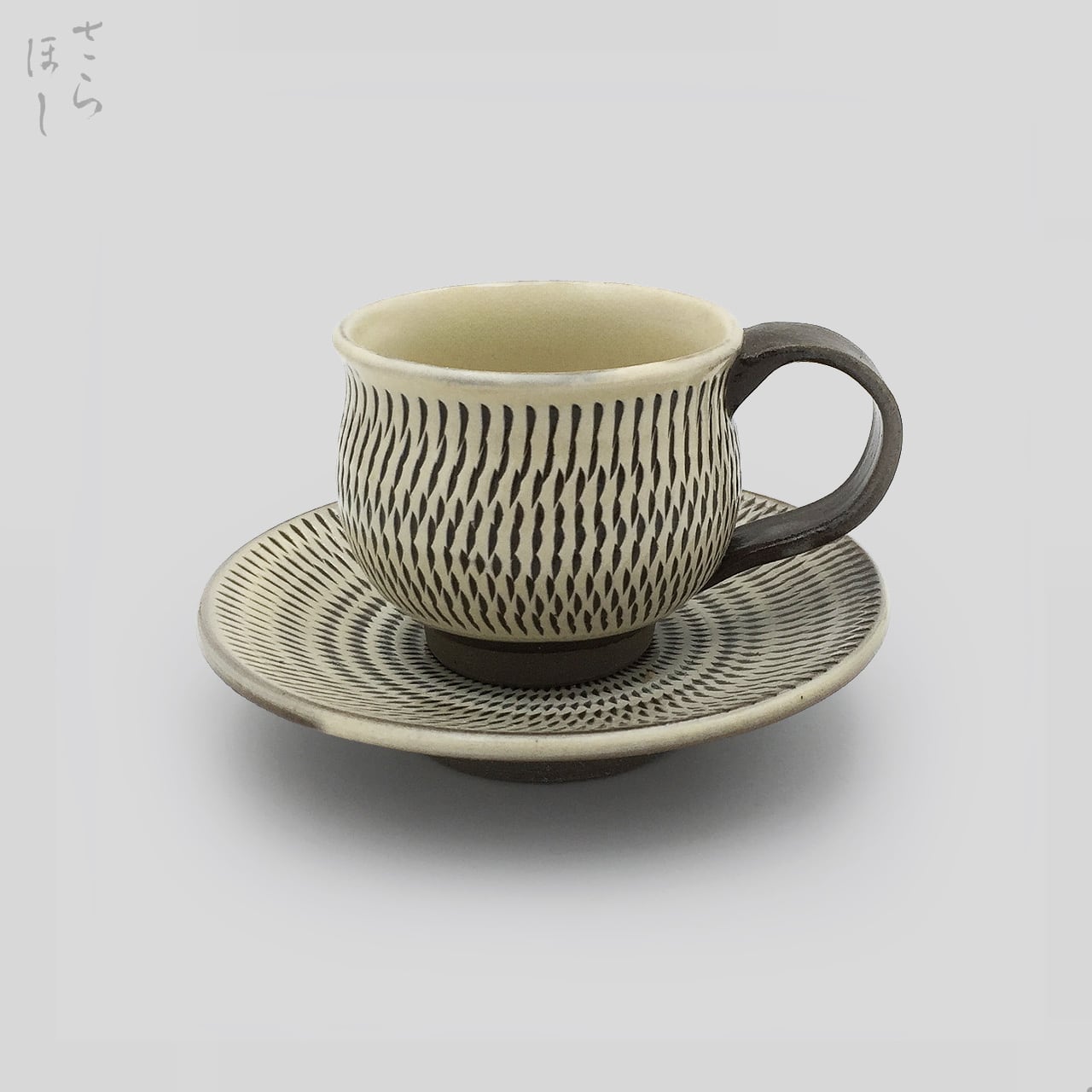小鹿田焼 小袋窯【コーヒーカップ&ソーサーセット】飛びかんな 白 陶器 和食器 民藝