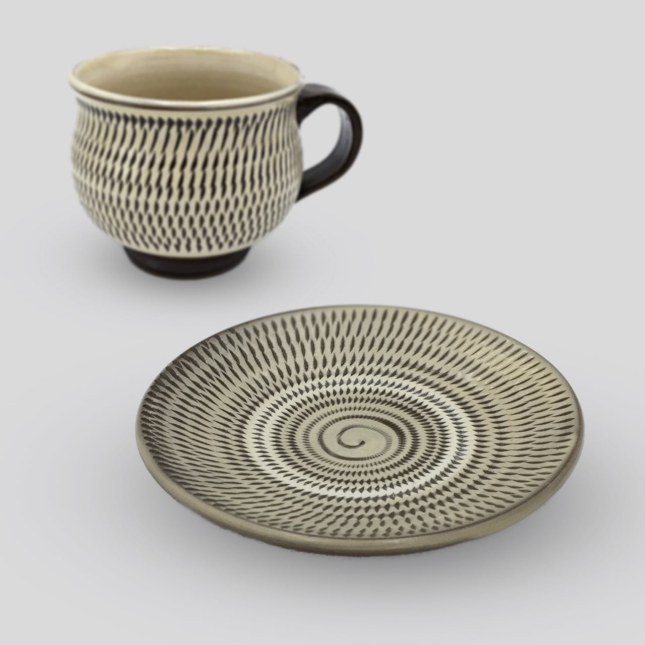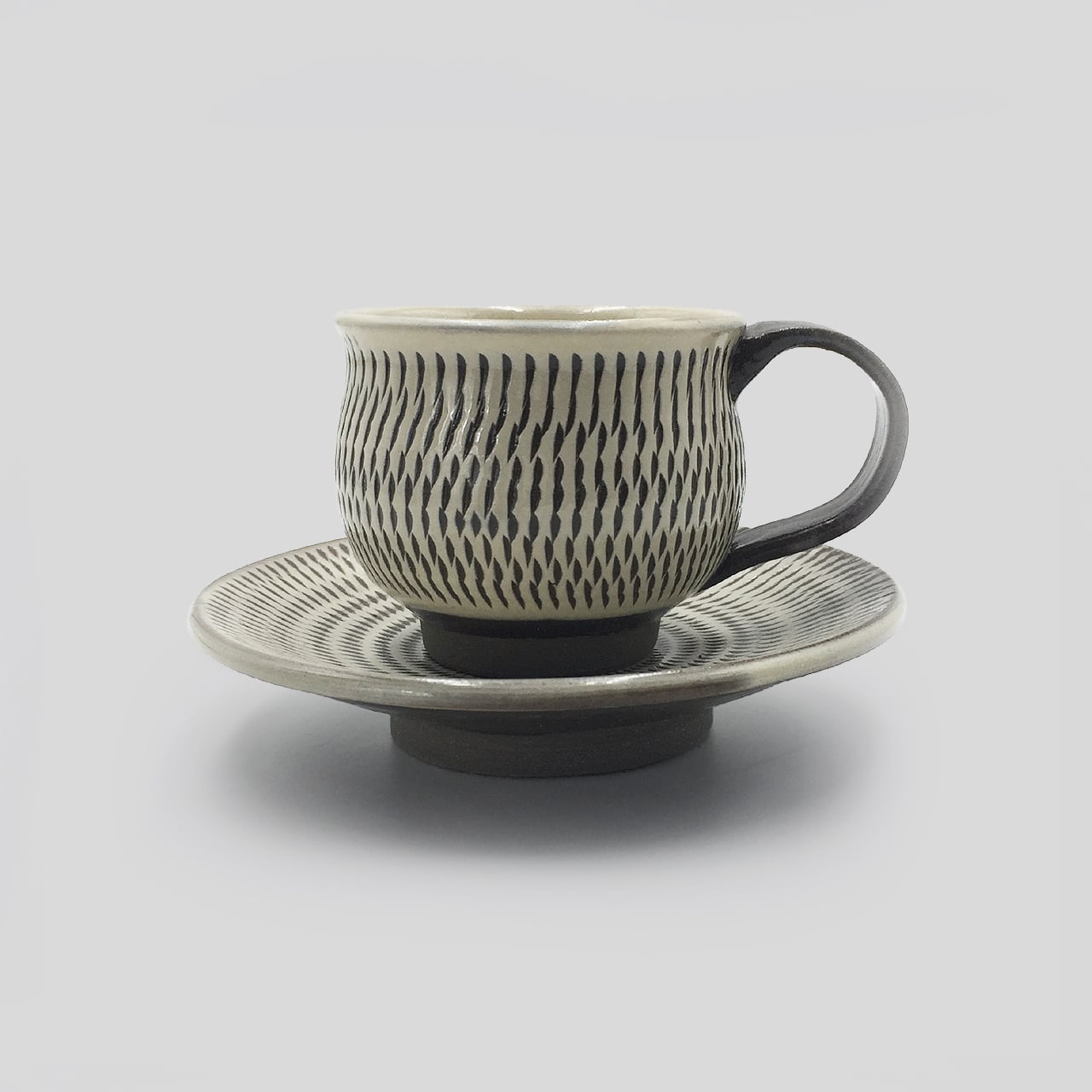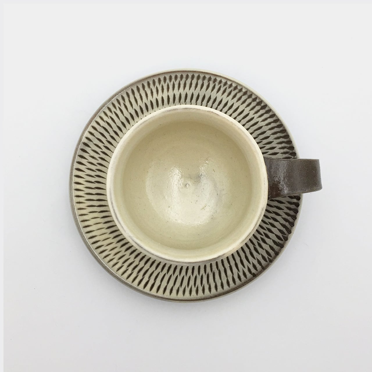 小鹿田焼(おんたやき)のコーヒーカップとソーサーのセットです。