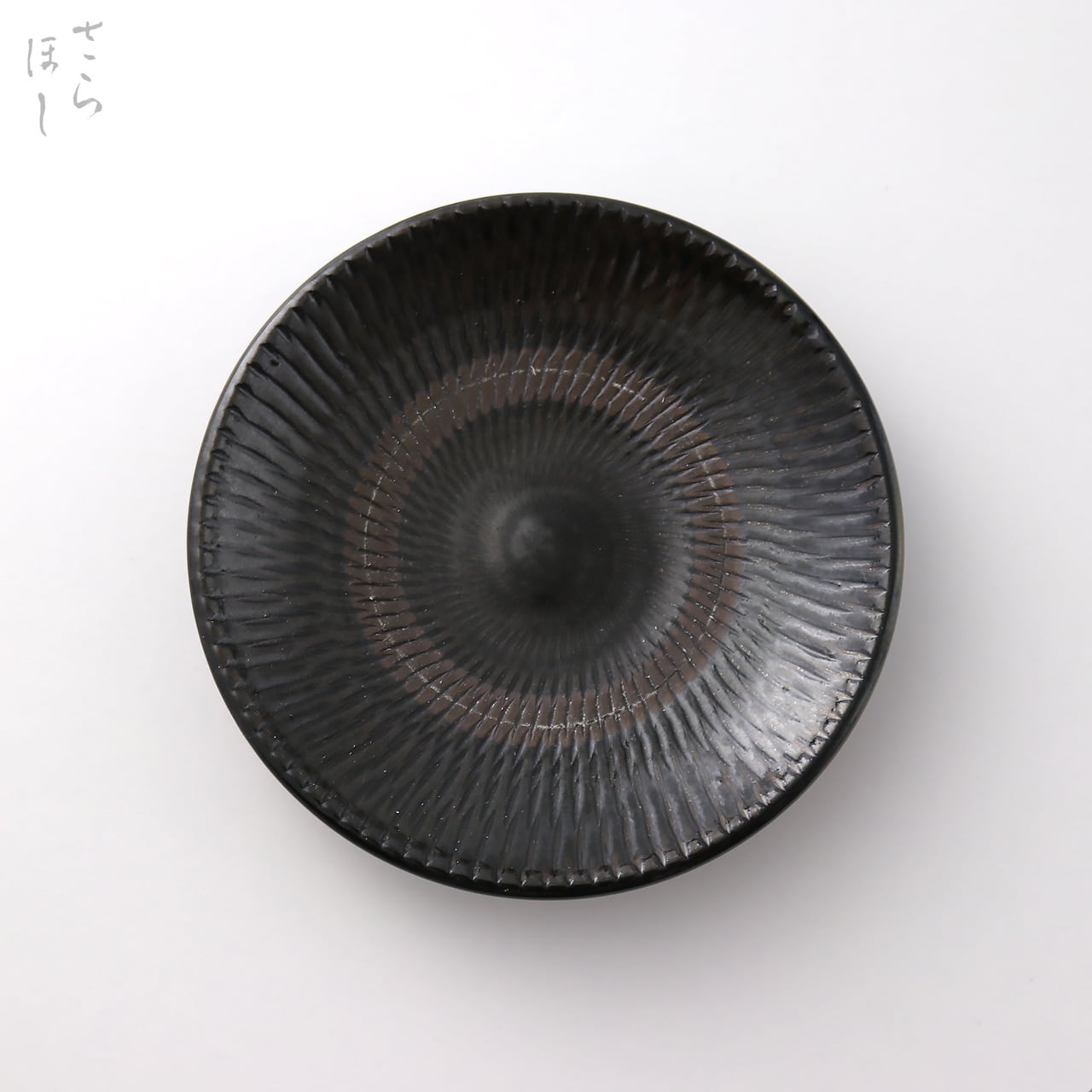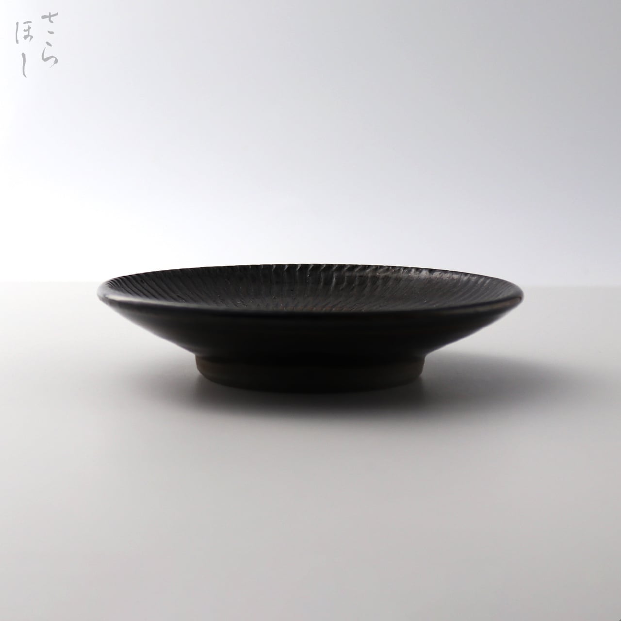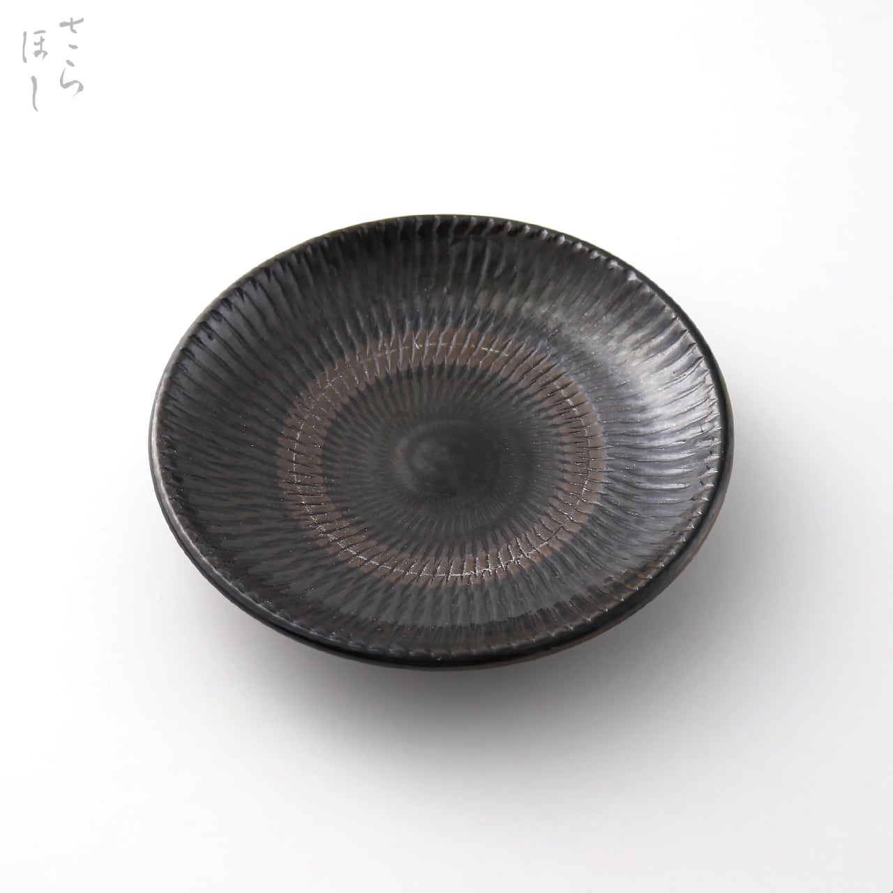 小鹿田焼 小袋窯 4.5寸皿 飛びかんな 真黒 直径約13.5cm 陶器 和食器 民藝