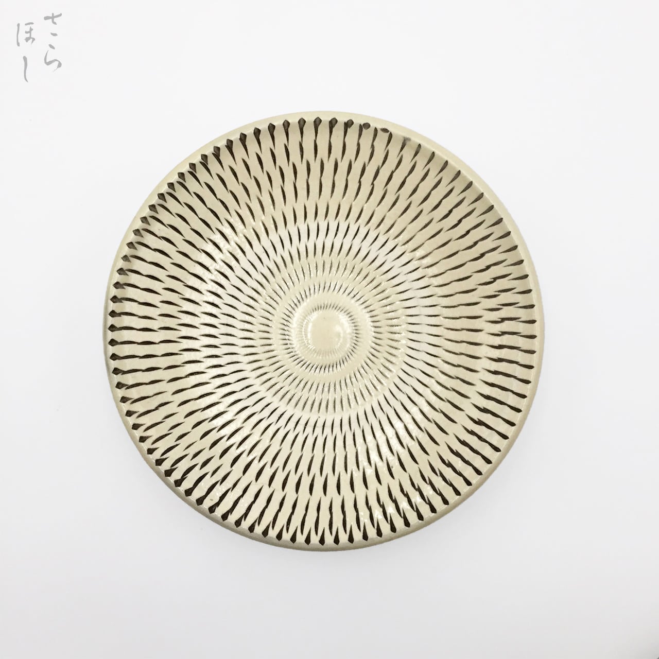 小鹿田焼 小袋窯 4.5寸皿 飛びかんな 白 直径約13.5cm 陶器 和食器 民藝