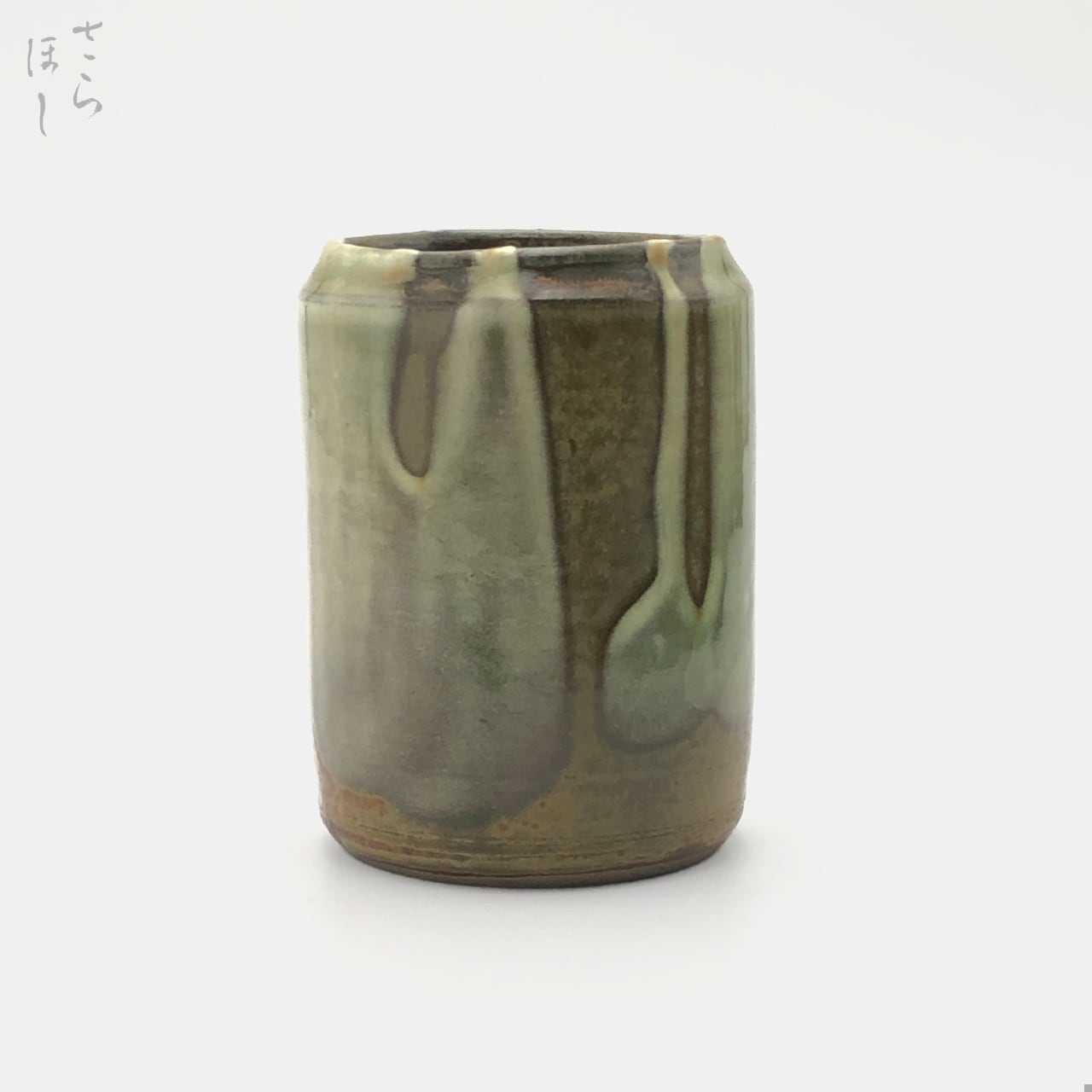 小鹿田焼 小袋窯 筆立て 掛け分け 緑 高さ約9.5cm ペン立て 花瓶 陶器 カトラリースタンド