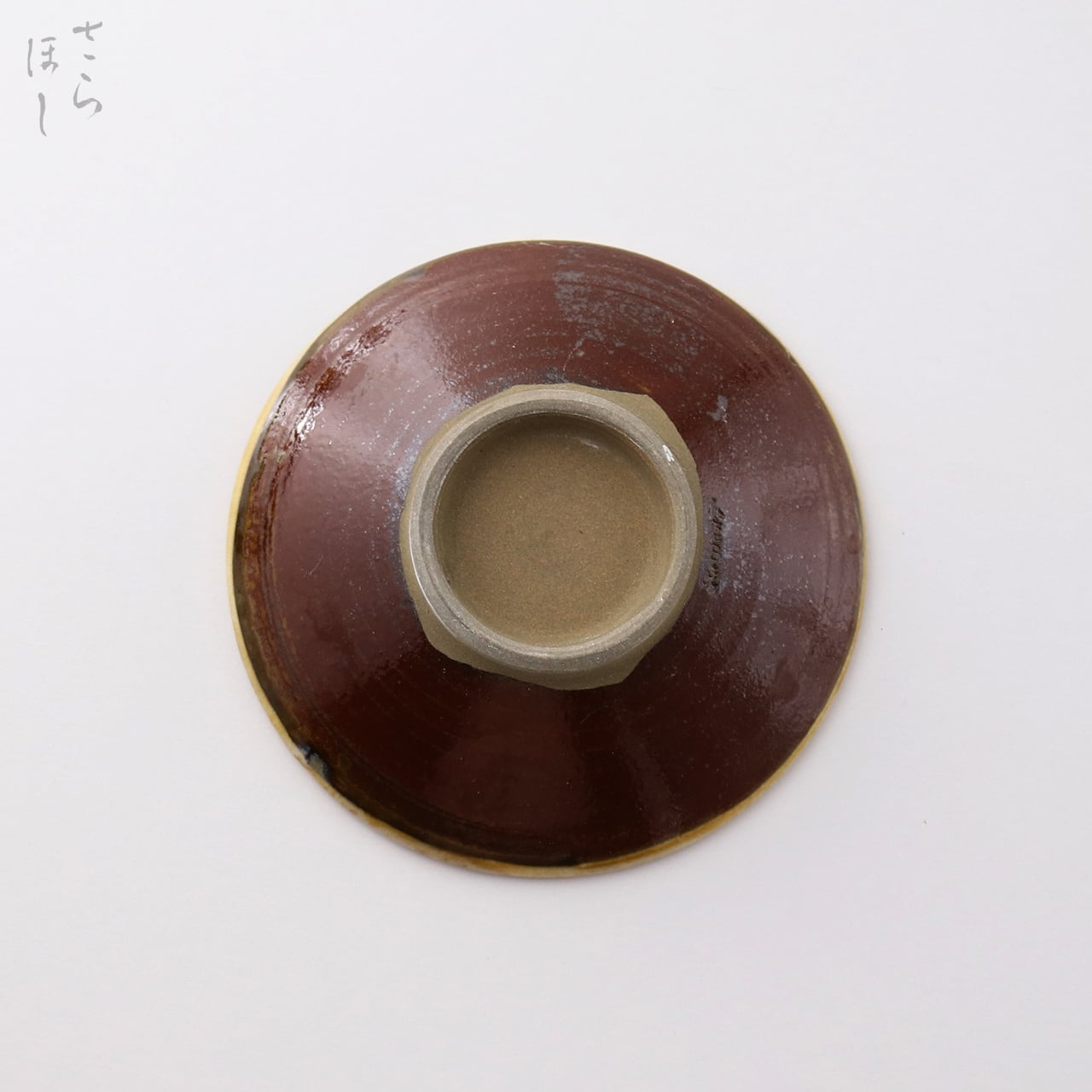 ・お皿等、窯で重ねて焼くものには、中央付近に白い円(目剥ぎ)があるものと無いものがあります。ご注文の際は目剥ぎの有無をご指定いただけません。ご了承ください。重なった部分がくっついてしまわないよう、釉薬を剥がした跡が白い円となって現れたものす。一番上で焼かれたものや、重ねずに焼かれたものには目剥ぎがありません。