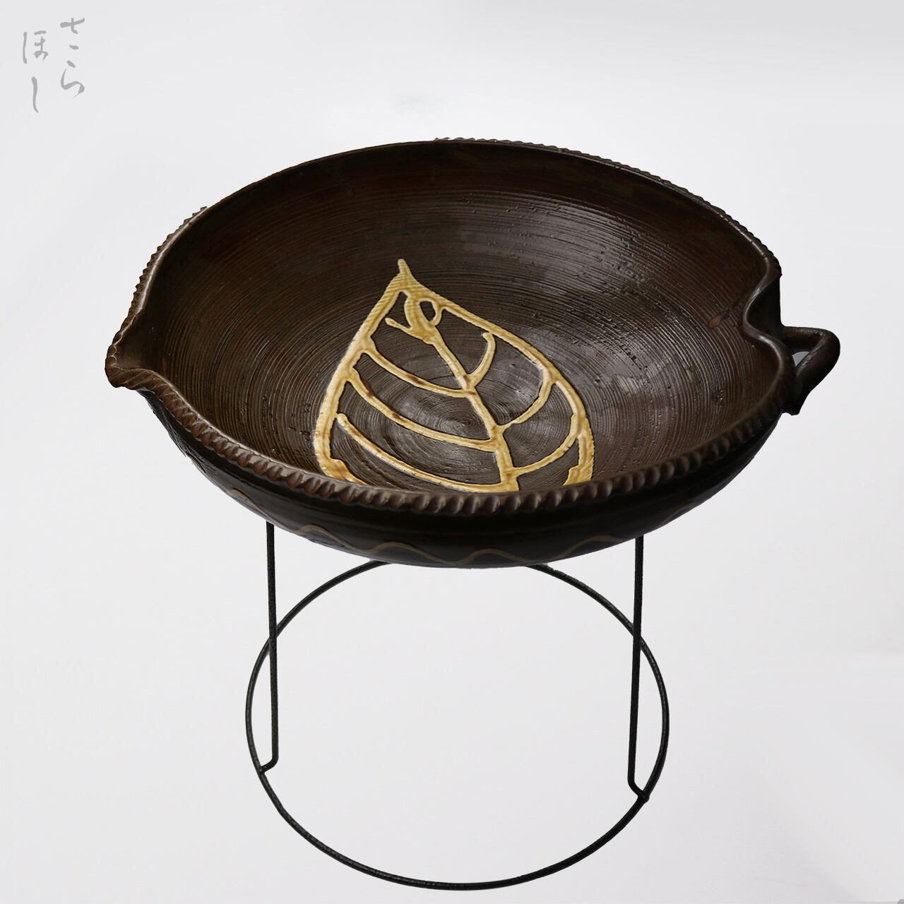 生け花の花器として盛り花や盆栽・盆景などに使用したり、睡蓮鉢として水生植物やメダカなどを育てる、ビオトープとして楽しむなど使い方があります。小鹿田焼の熟練した職人の手仕事による水盤をお楽しみください。※画像の金属台は参考です。商品に含まれません。