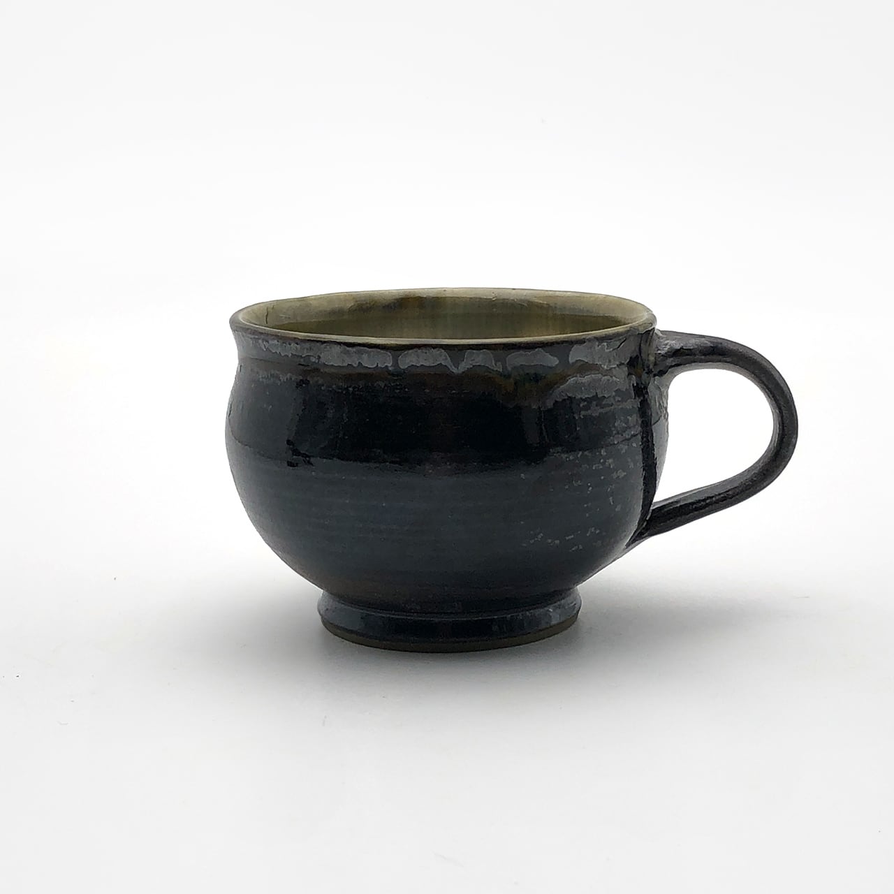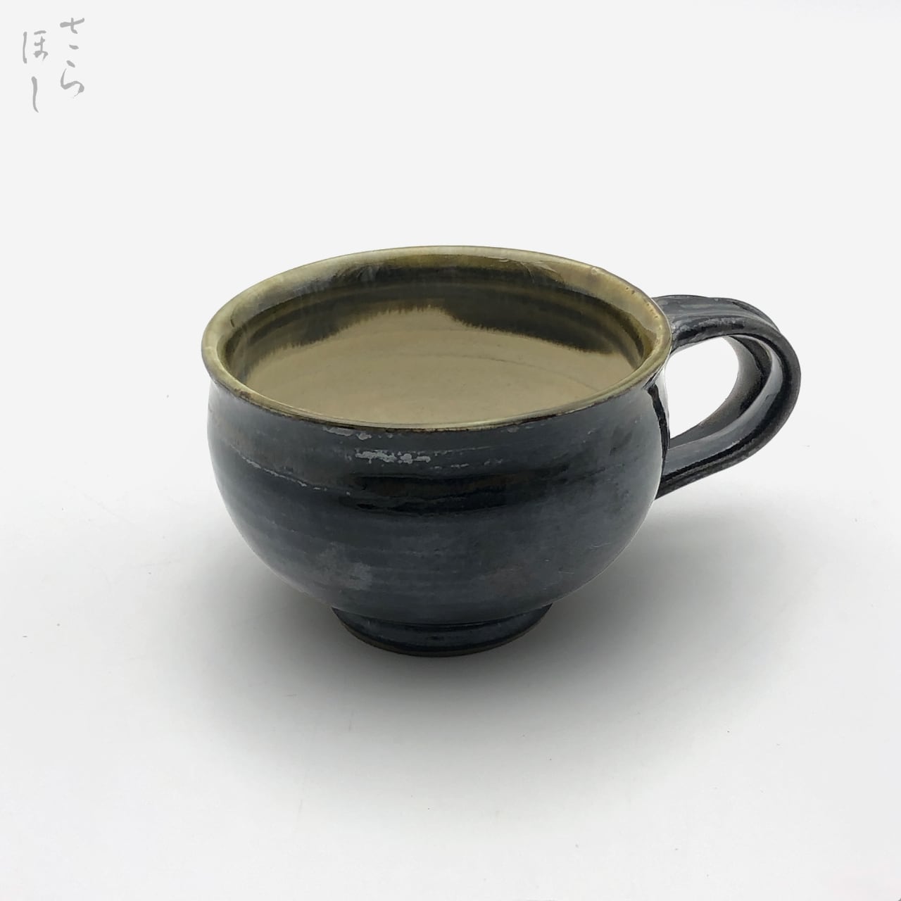 小鹿田焼 小袋窯 コーヒーカップ 真黒 口径約8cm 陶器 和食器 民藝