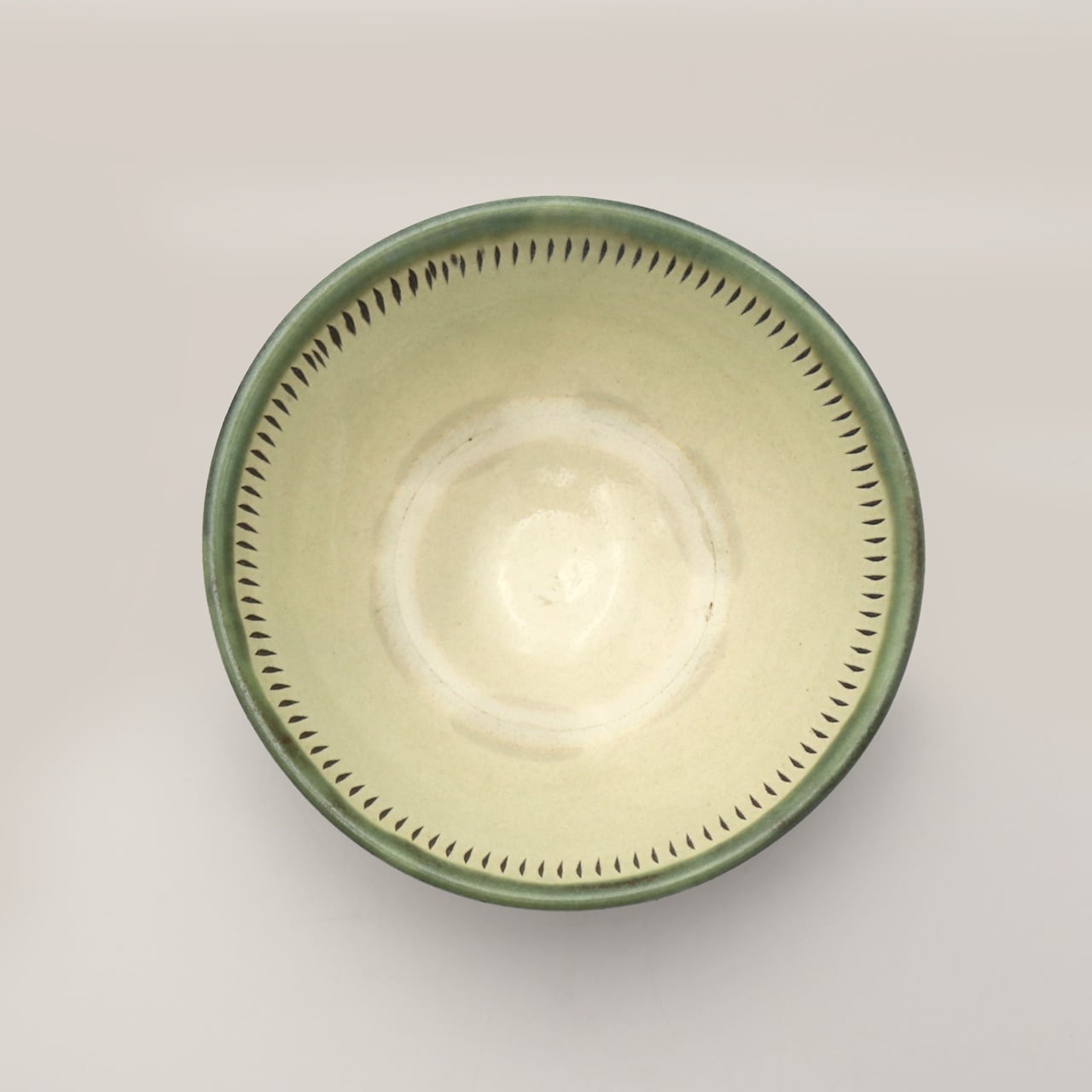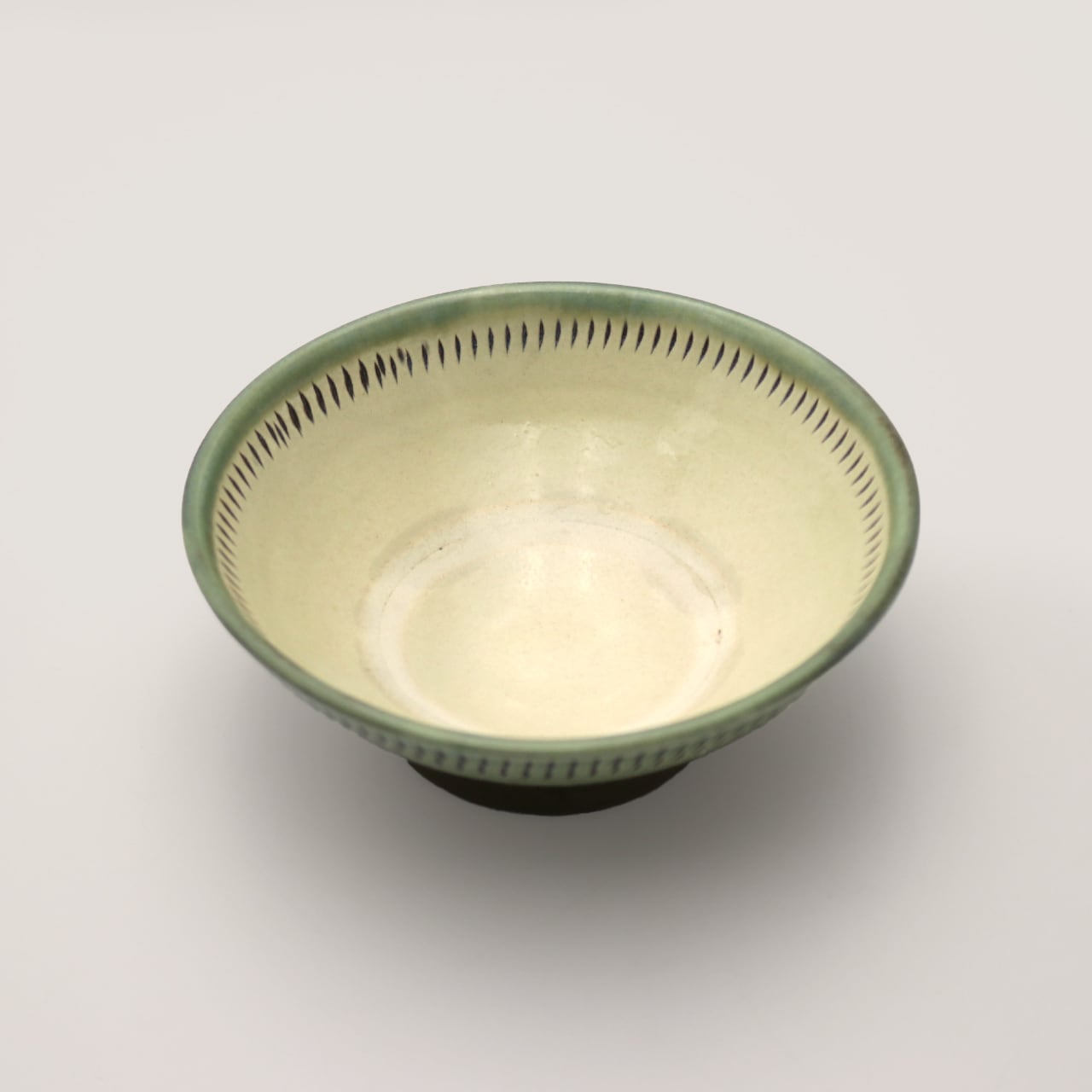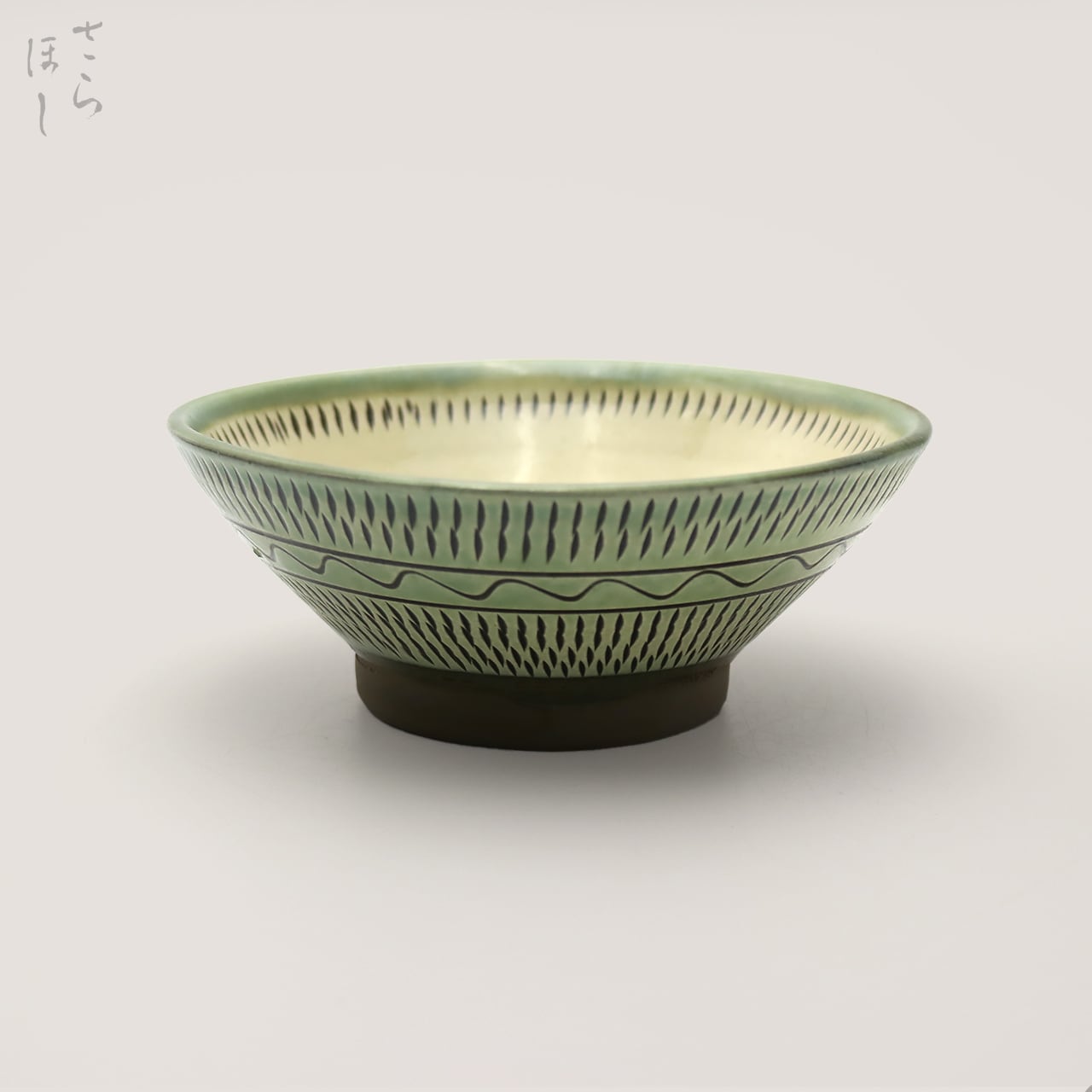 小鹿田焼 小袋窯 5寸丼 飛びかんな/櫛描き 緑 直径約15.5cm 陶器 和食器 民藝