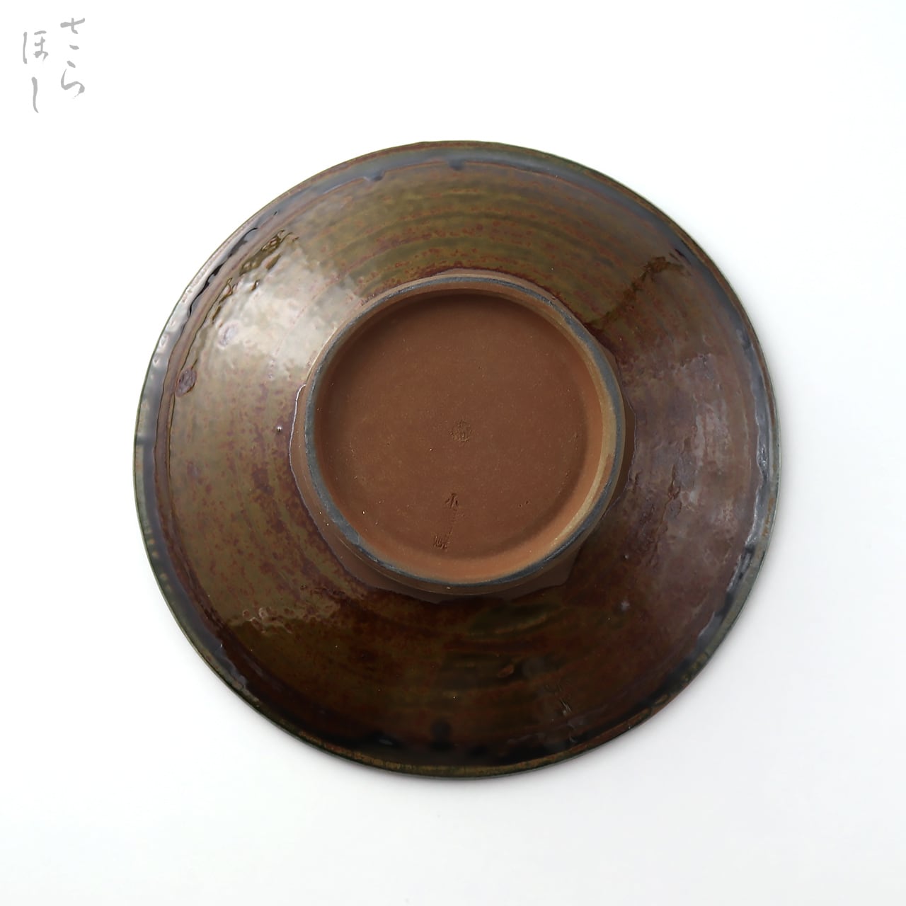 ・お皿等、窯で重ねて焼くものには、中央付近に白い円(目剥ぎ)があるものと無いものがあります。ご注文の際は目剥ぎの有無をご指定いただけません。ご了承ください。重なった部分がくっついてしまわないよう、釉薬を剥がした跡が白い円となって現れたものす。一番上で焼かれたものや、重ねずに焼かれたものには目剥ぎがありません。
