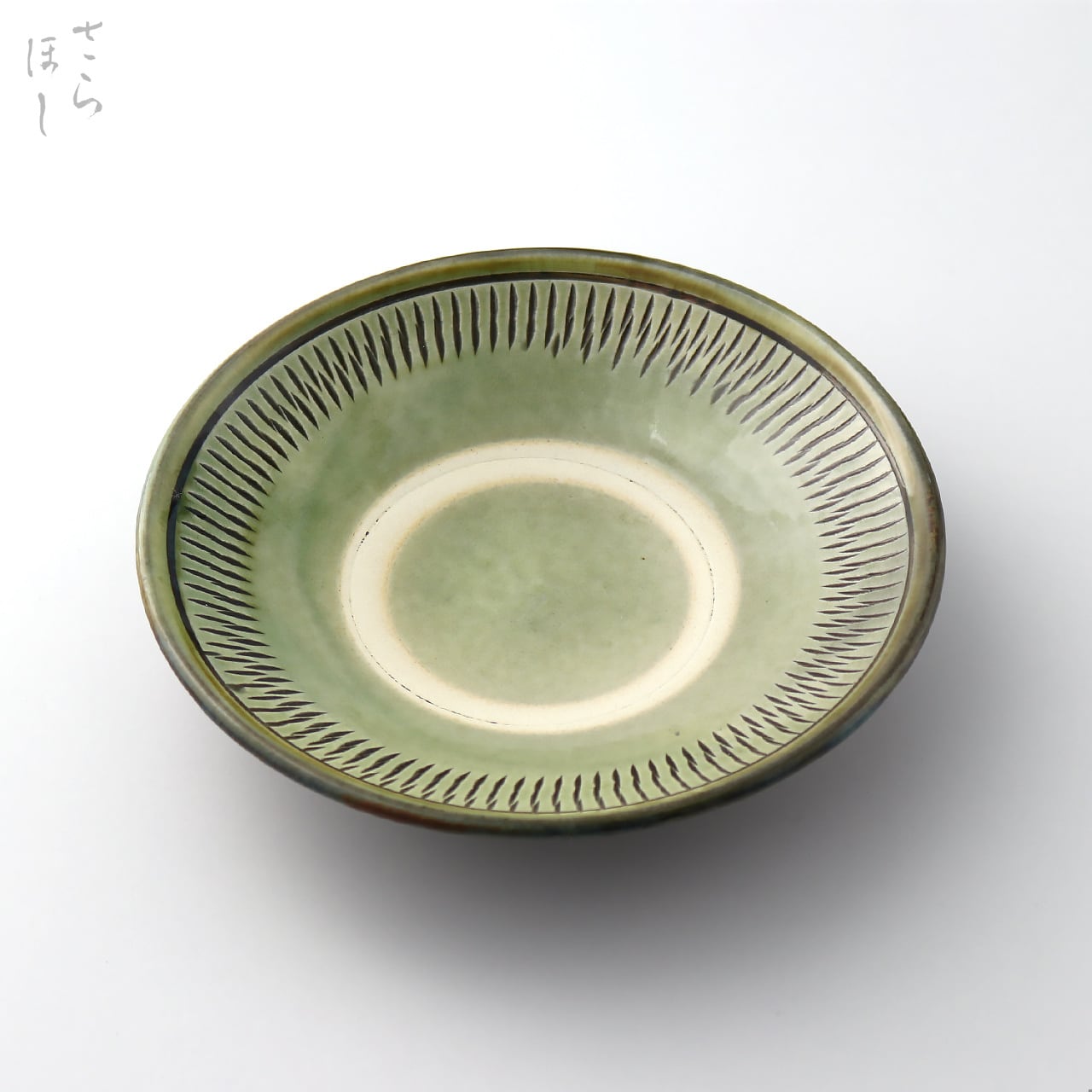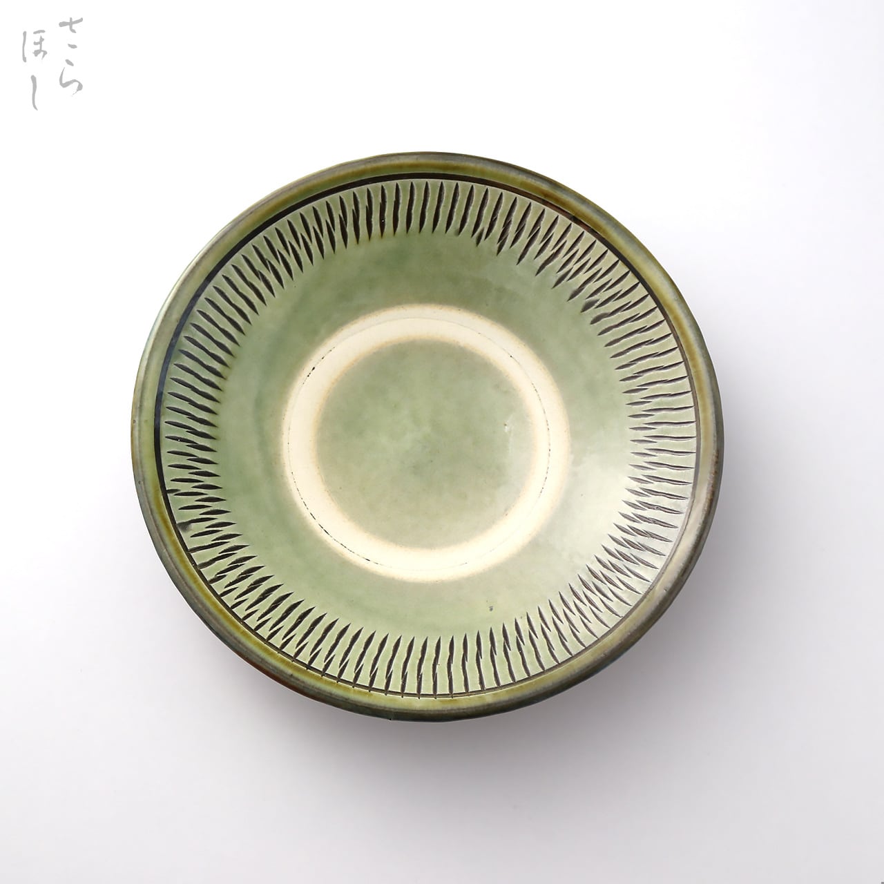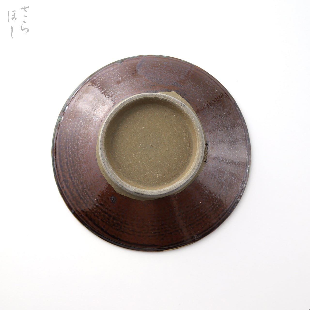 ・お皿等、窯で重ねて焼くものには、中央付近に白い円(目剥ぎ)があるものと無いものがあります。ご注文の際は目剥ぎの有無をご指定いただけません。ご了承ください。重なった部分がくっついてしまわないよう、釉薬を剥がした跡が白い円となって現れたものす。一番上で焼かれたものや、重ねずに焼かれたものには目剥ぎがありません。