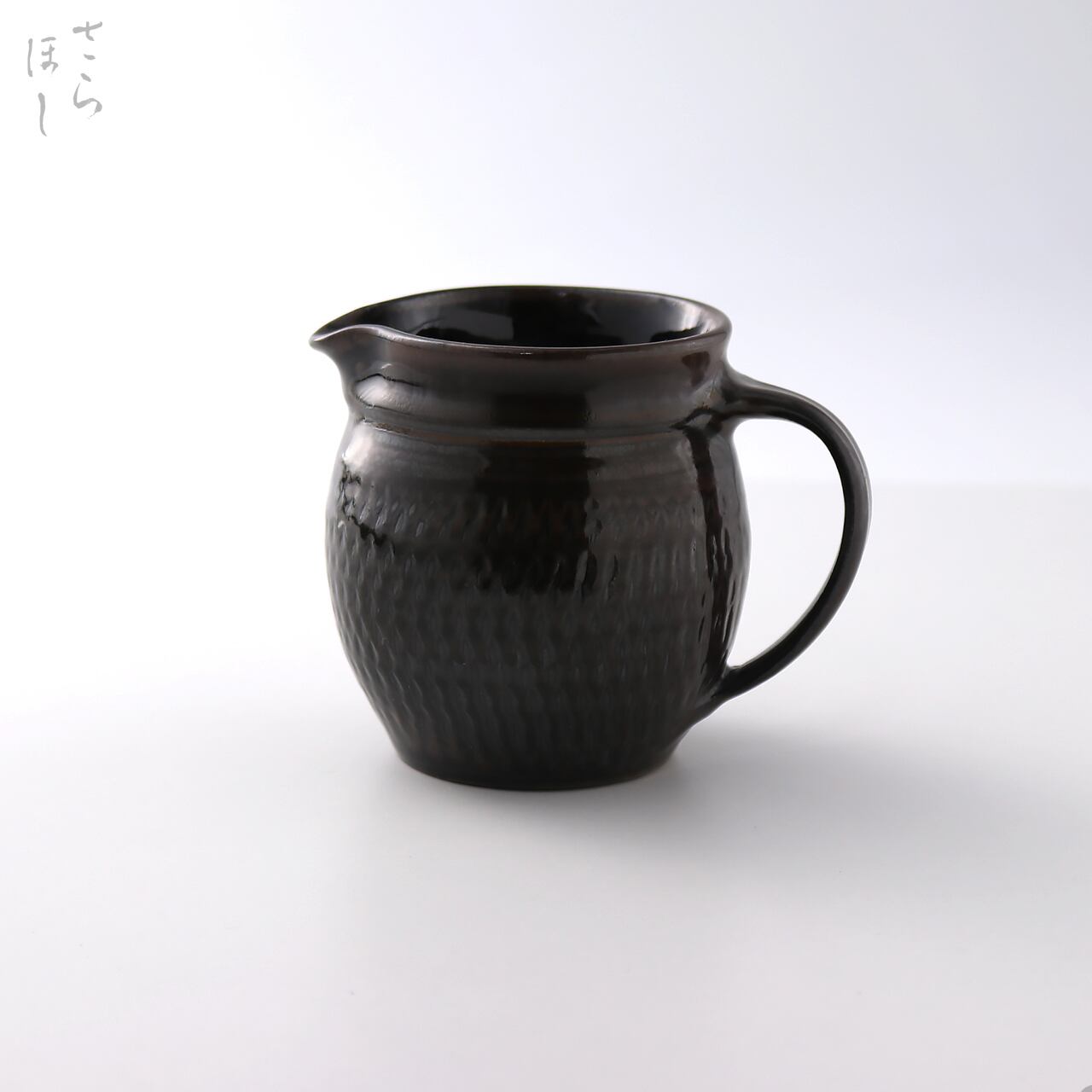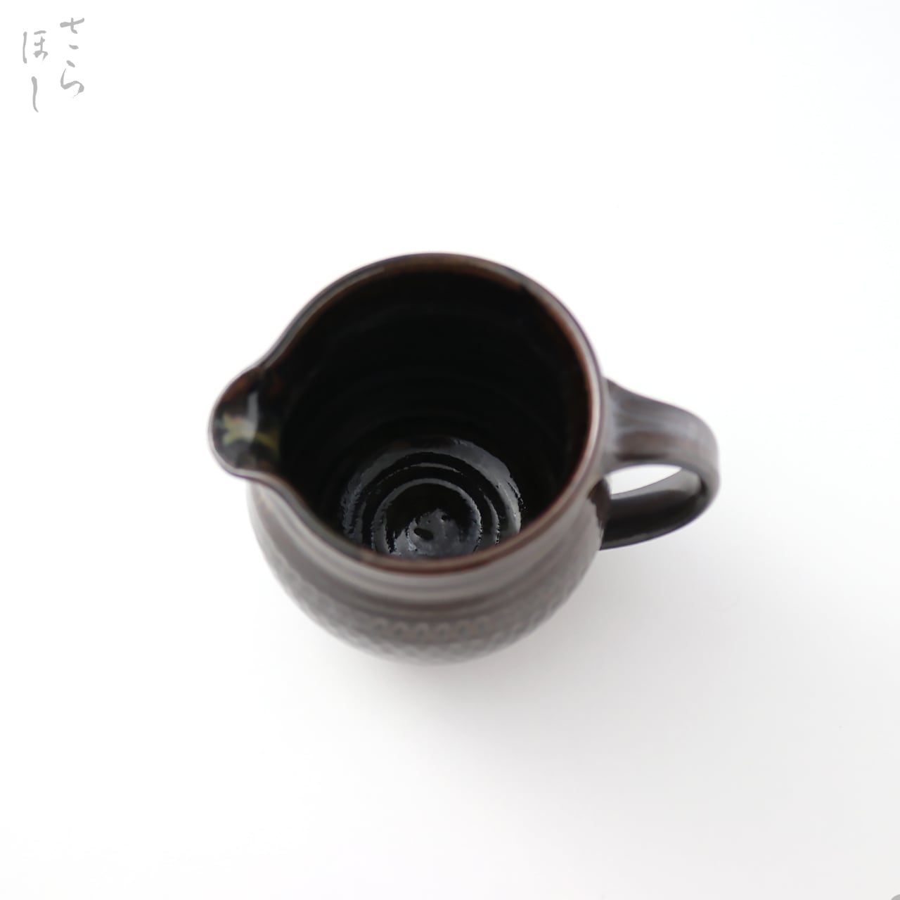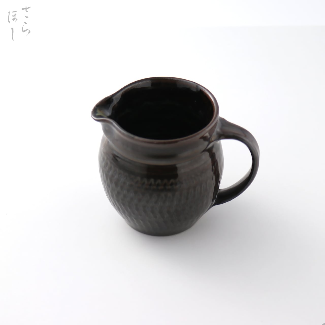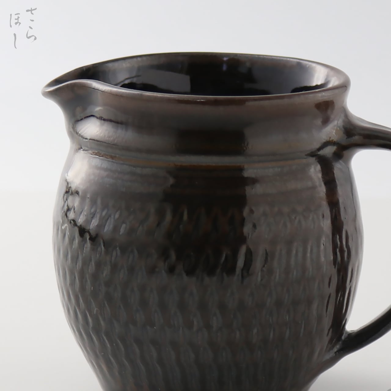 小鹿田焼 小袋窯 3寸ピッチャー 地飛びかんな 黒 高さ約8.5cm 陶器 和食器 民藝 水差し ミルクピッチャー