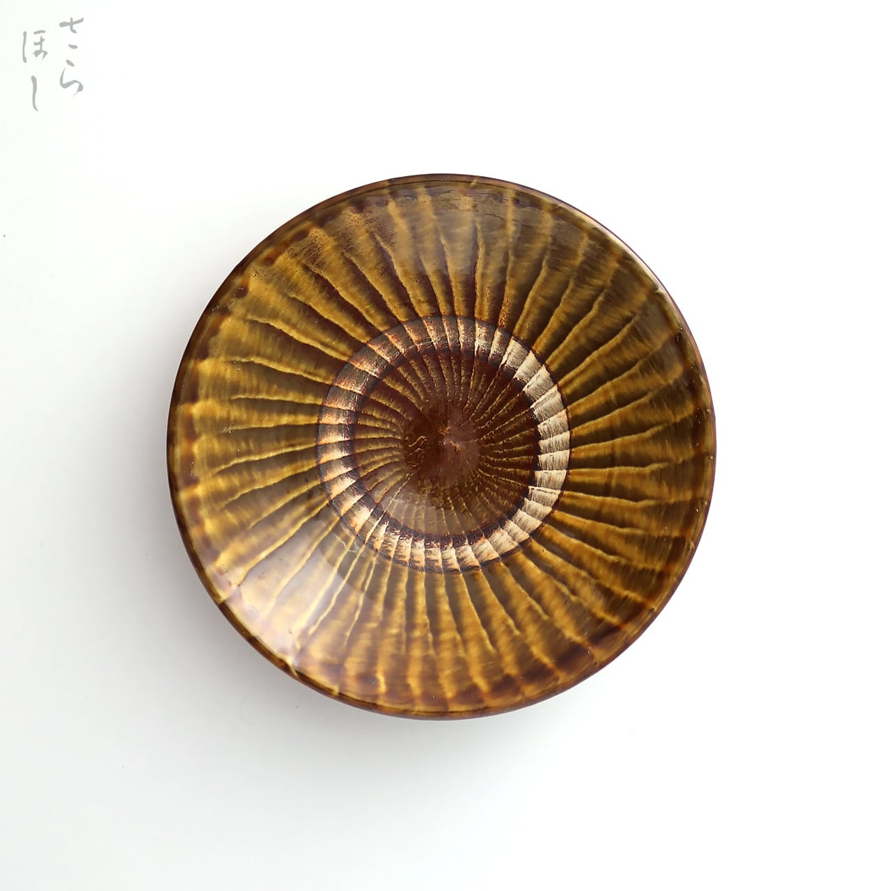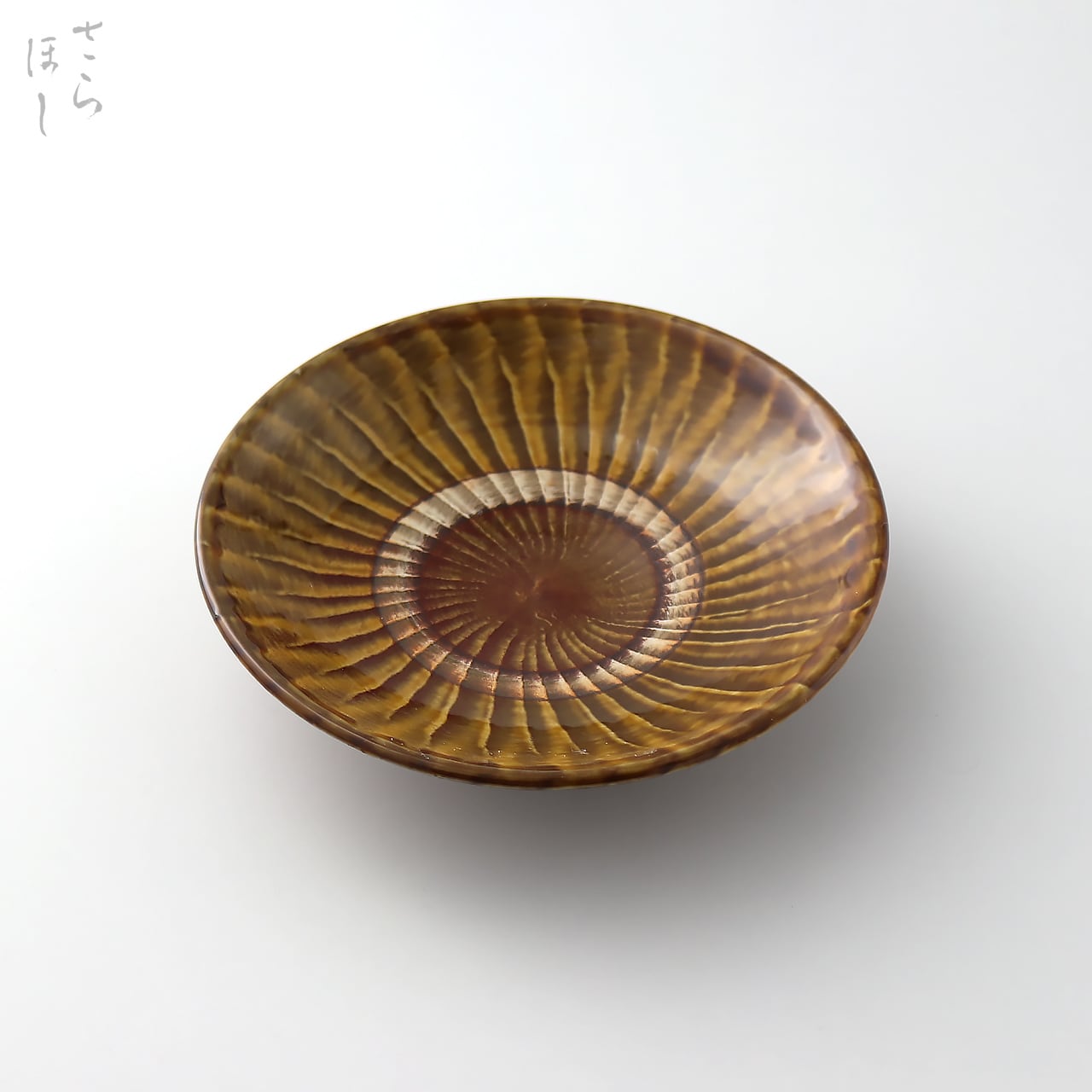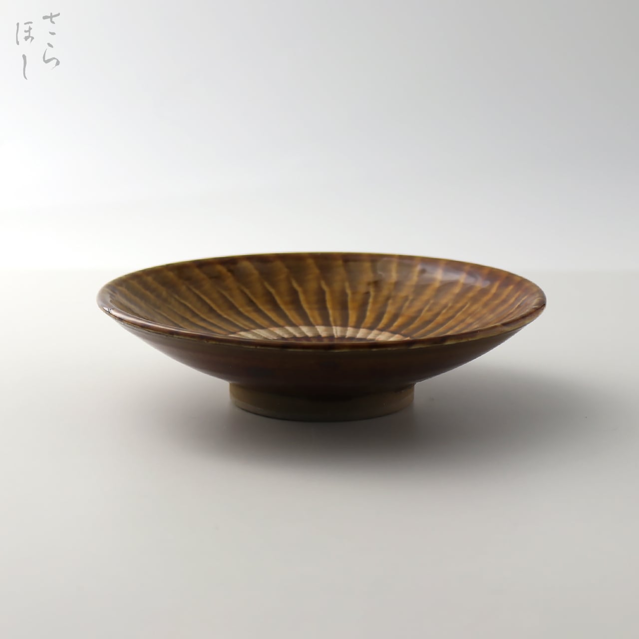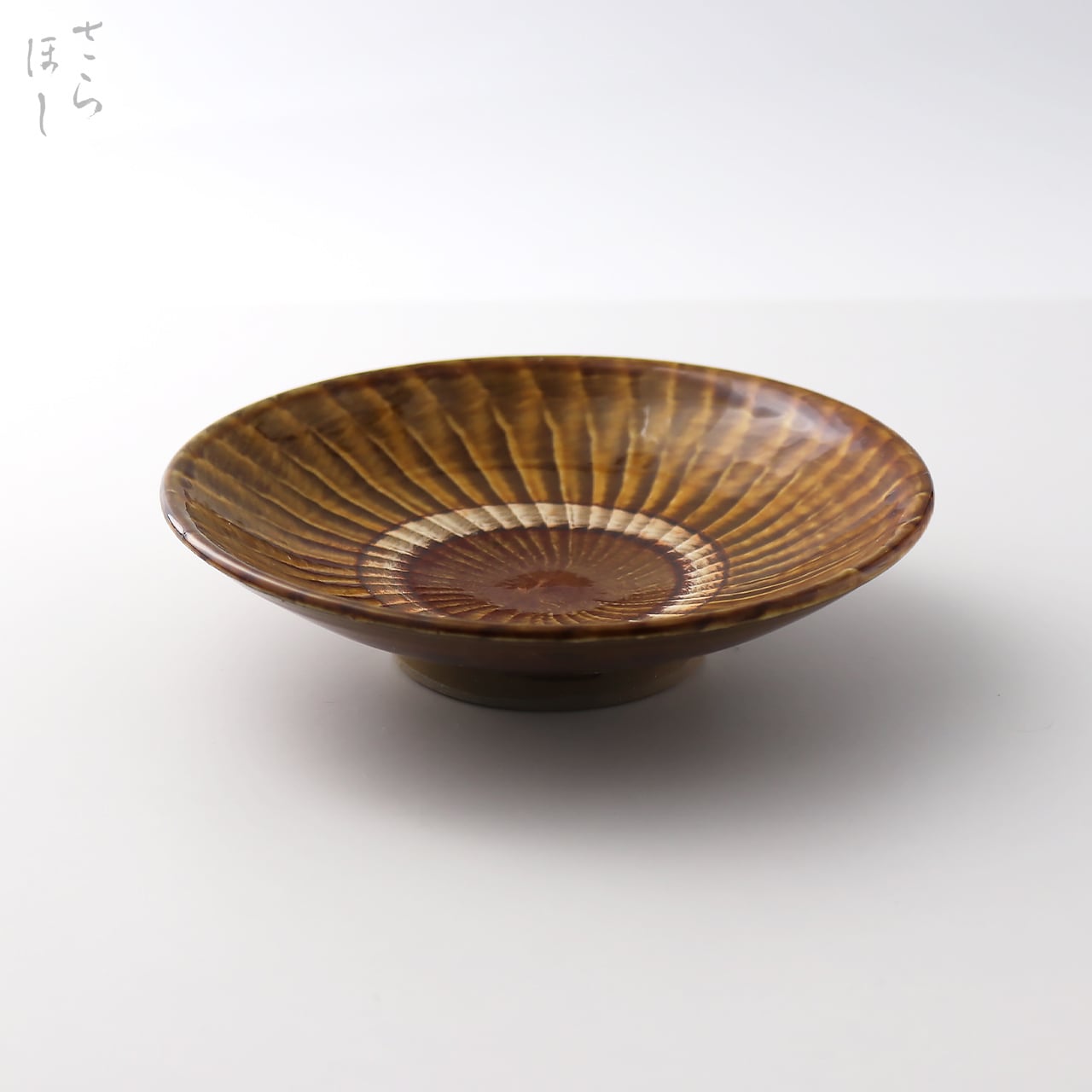 小鹿田焼 小袋窯 5寸皿 打ち刷毛目 茶 直径約15cm 中皿 陶器 和食器 民藝