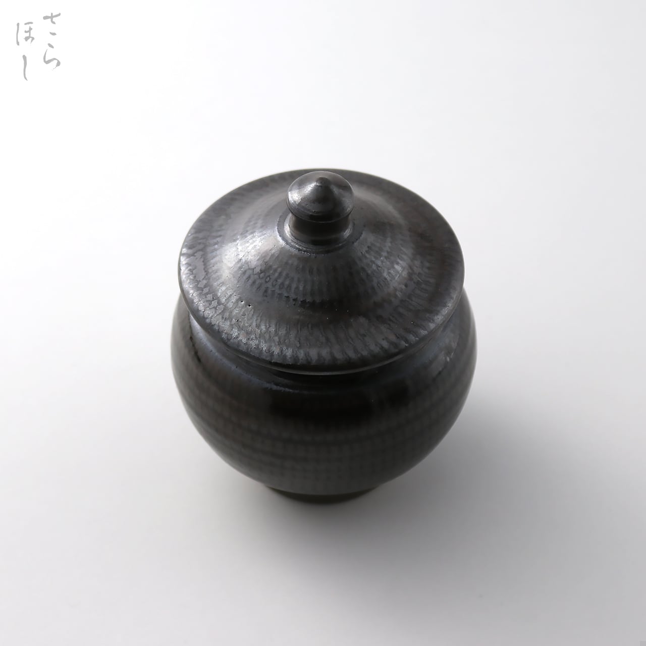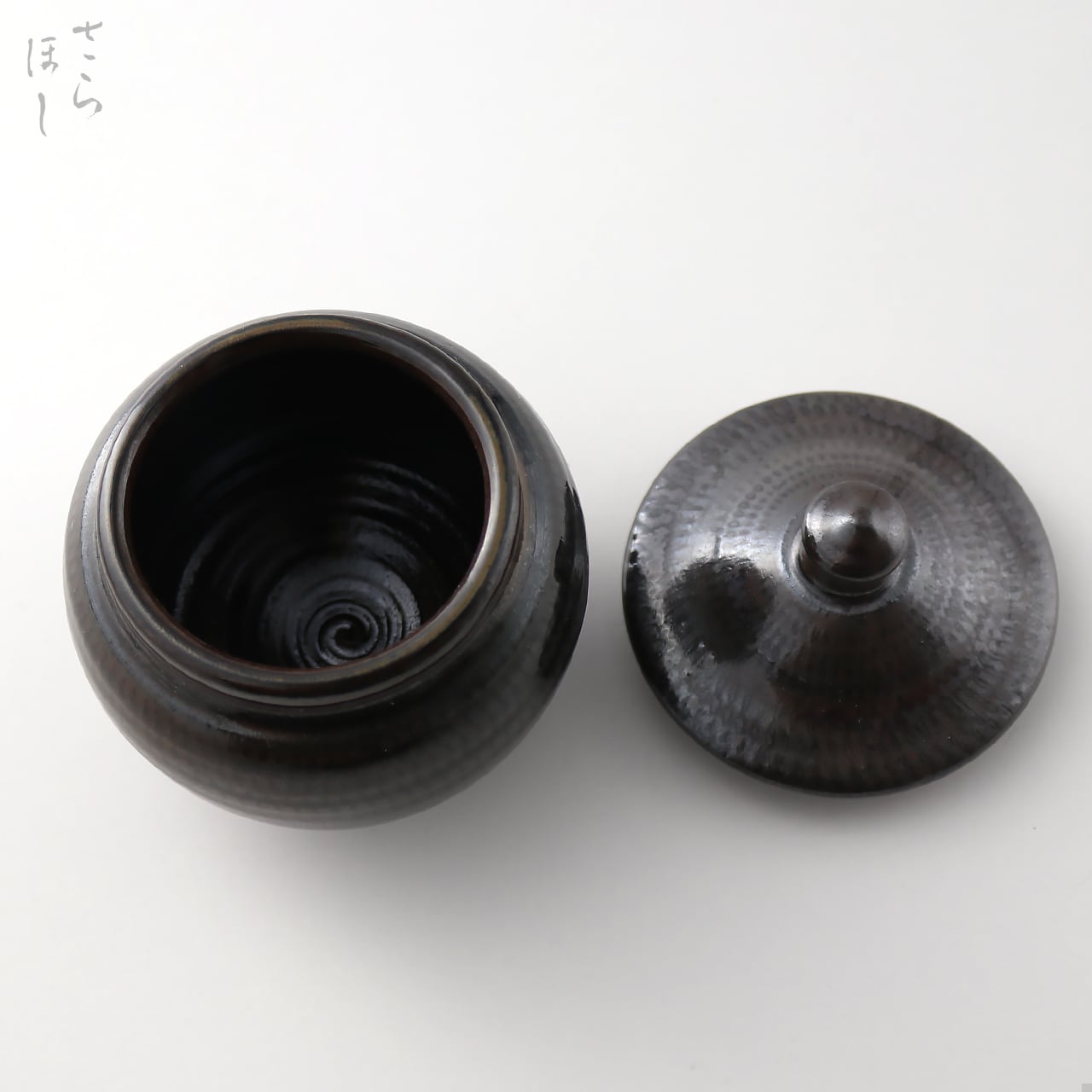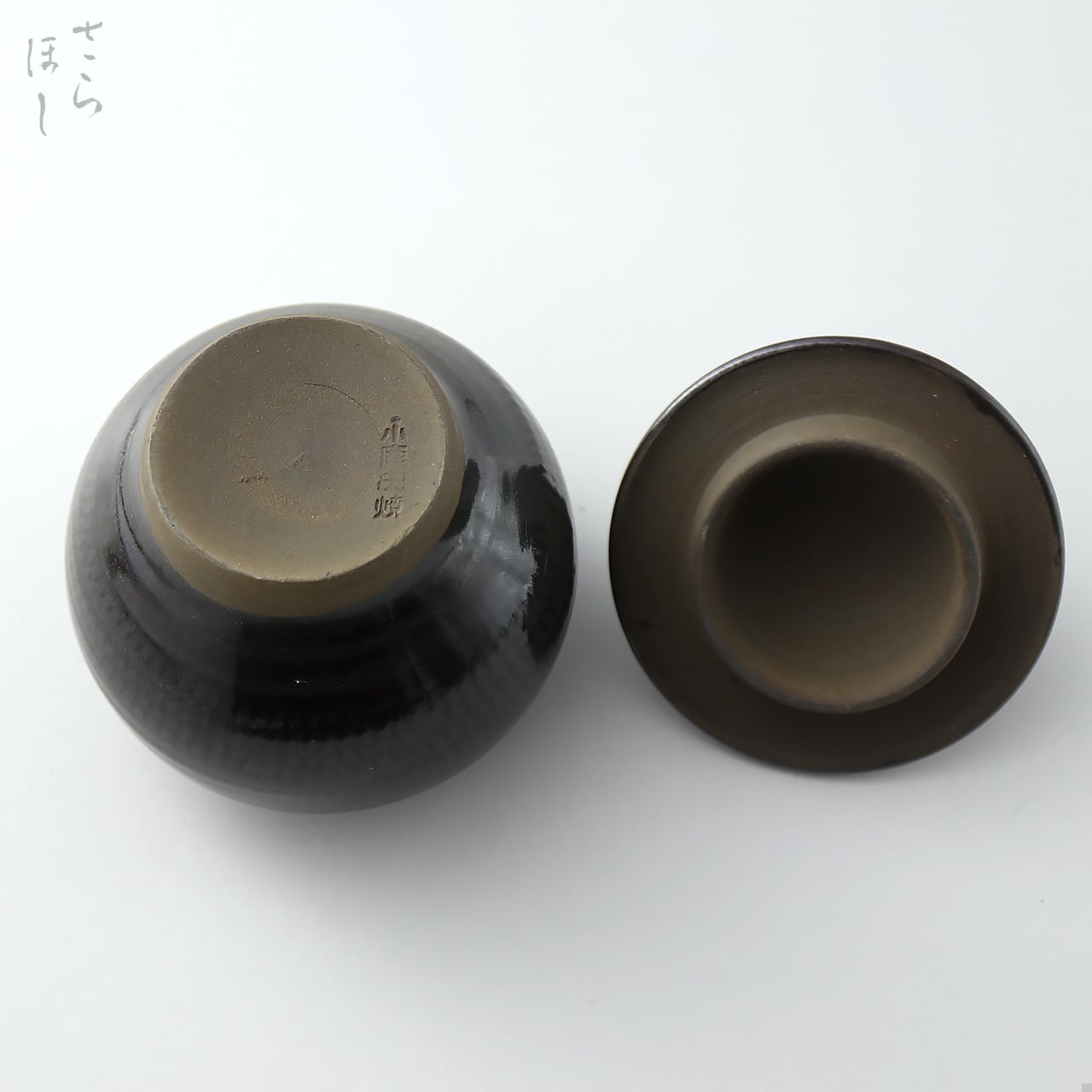 小鹿田焼 小袋窯 一合壺 地飛びかんな 真黒 直径約8.4cm 陶器 和食器 民藝