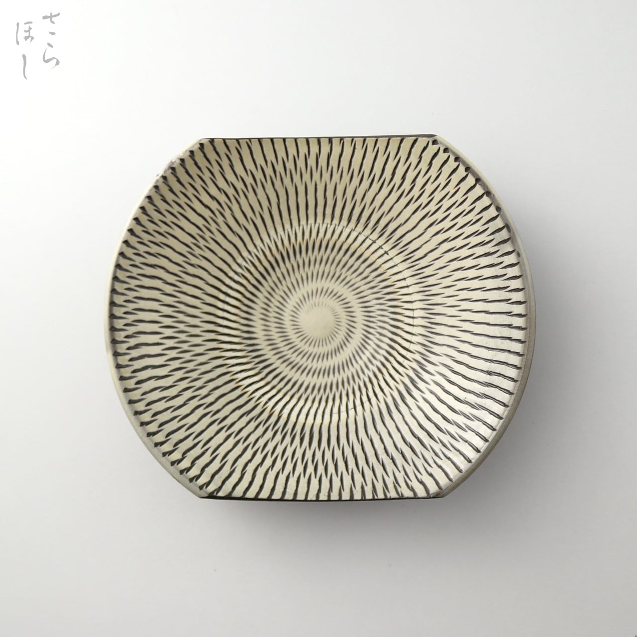 小鹿田焼 小袋窯 6寸角皿(楕円) 飛びかんな 白 直径約18.5cm 陶器 和食器 民藝