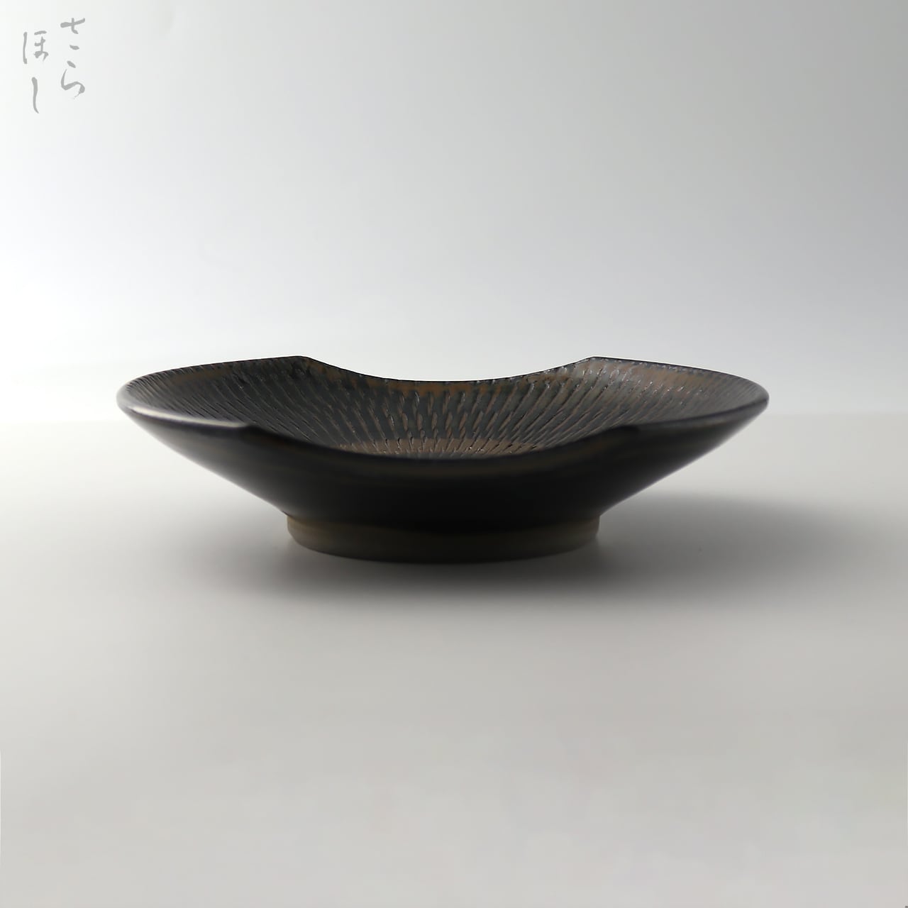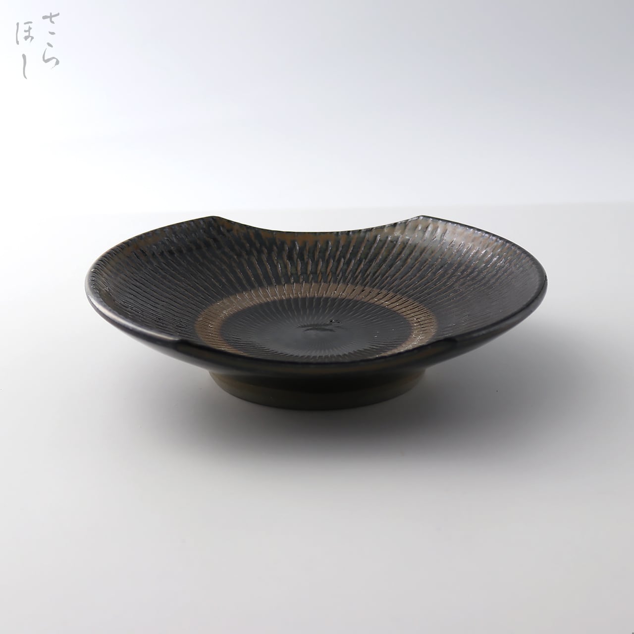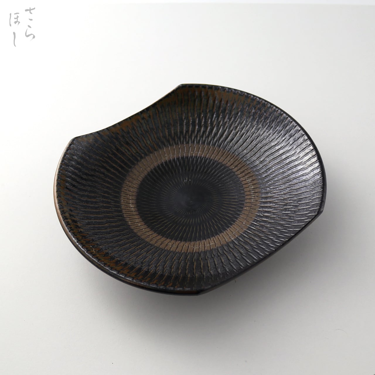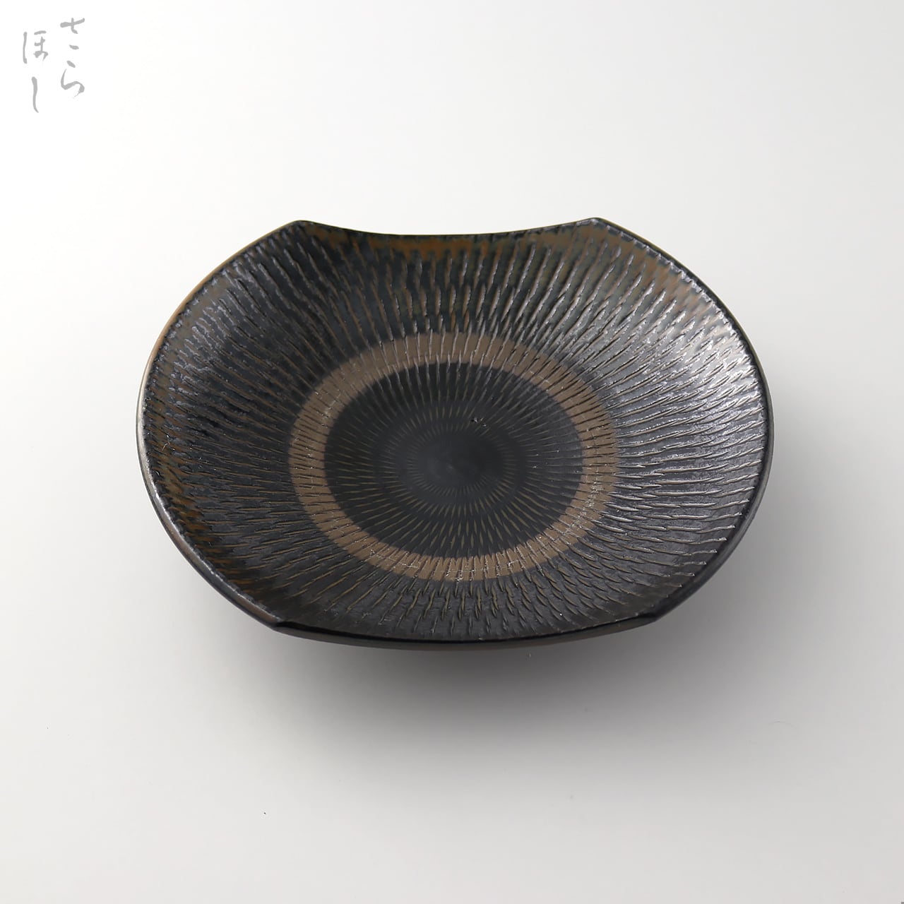 小鹿田焼 小袋窯 6寸角皿(楕円) 飛びかんな 真黒 直径約18.5cm 陶器 和食器 民藝