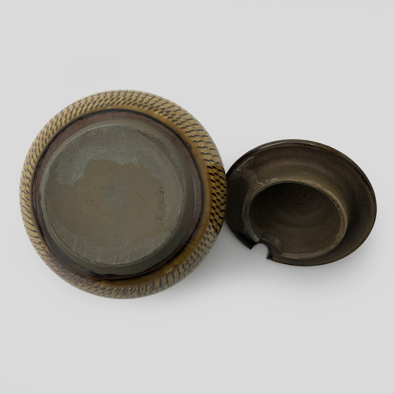 小鹿田焼 小袋窯 三合薬味壺 飛びかんな 茶 直径約12cm 陶器 和食器 民藝