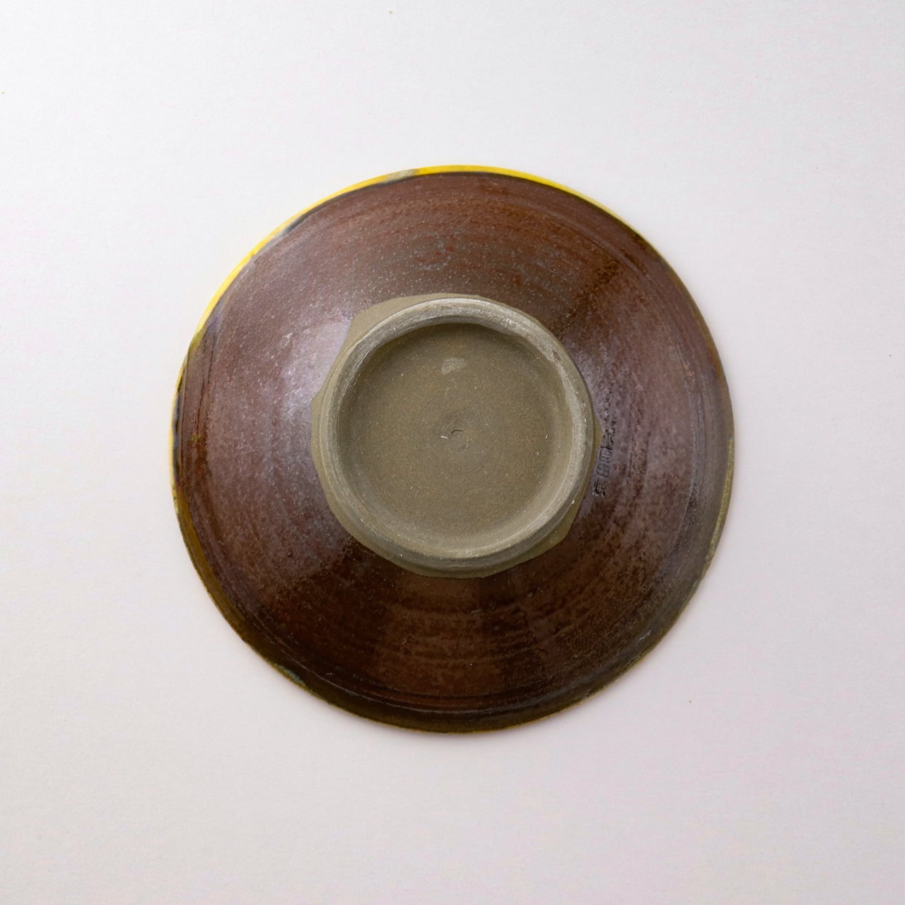 ・お皿等、窯で重ねて焼くものには、中央付近に白い円(目剥ぎ)があるものと無いものがあります。ご注文の際は目剥ぎの有無をご指定いただけません。ご了承ください。重なった部分がくっついてしまわないよう、釉薬を剥がした跡が白い円となって現れたものす。一番上で焼かれたものや、重ねずに焼かれたものには目剥ぎがありません。