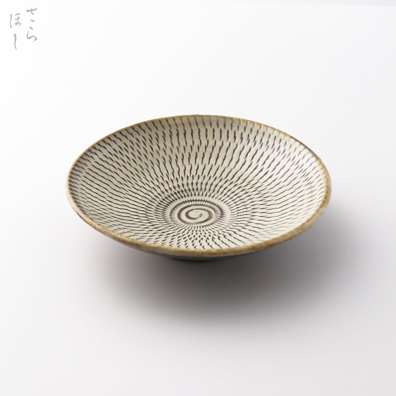 小鹿田焼 小袋窯 5寸皿 飛びかんな 白 直径約15cm 中皿 陶器 和食器 民藝
