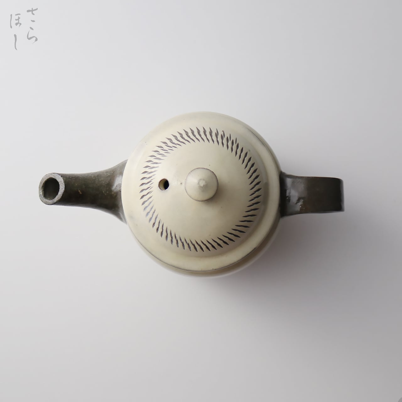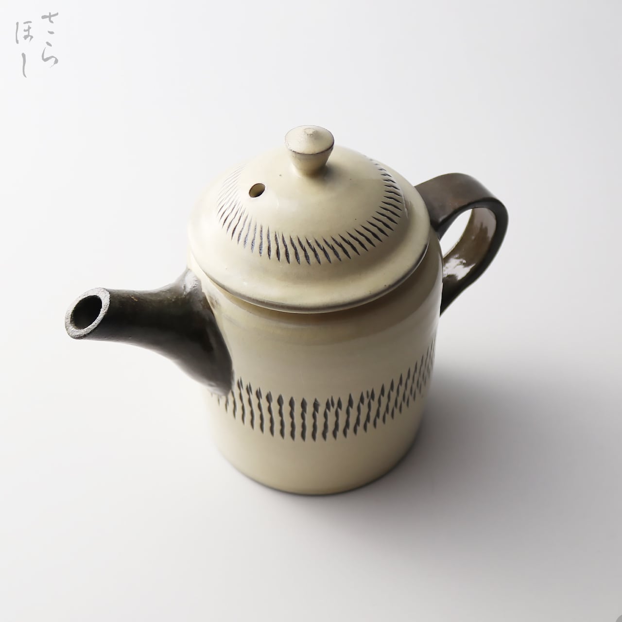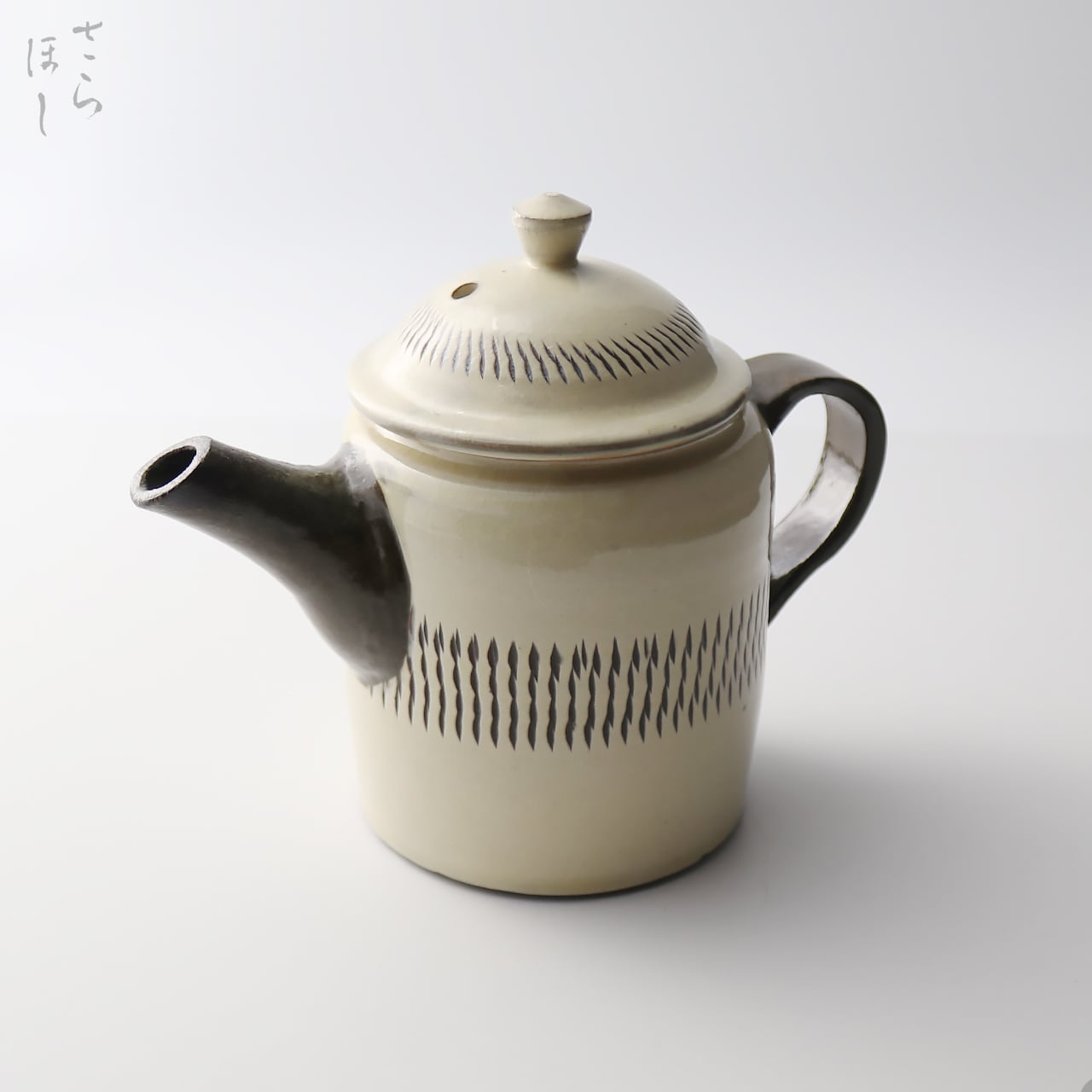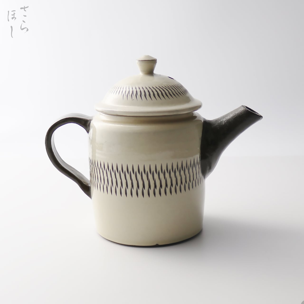 小鹿田焼 小袋窯 ティーポット 中央飛びかんな 白 高さ約15cm 陶器 民藝