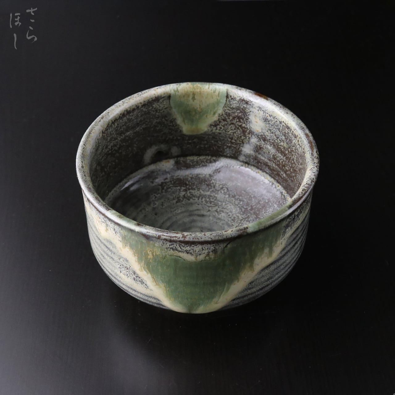 小鹿田焼 小袋窯 抹茶碗 銘 鹿峰 青なだれ 口径約12cm 一点もの 陶器 茶道具 民藝