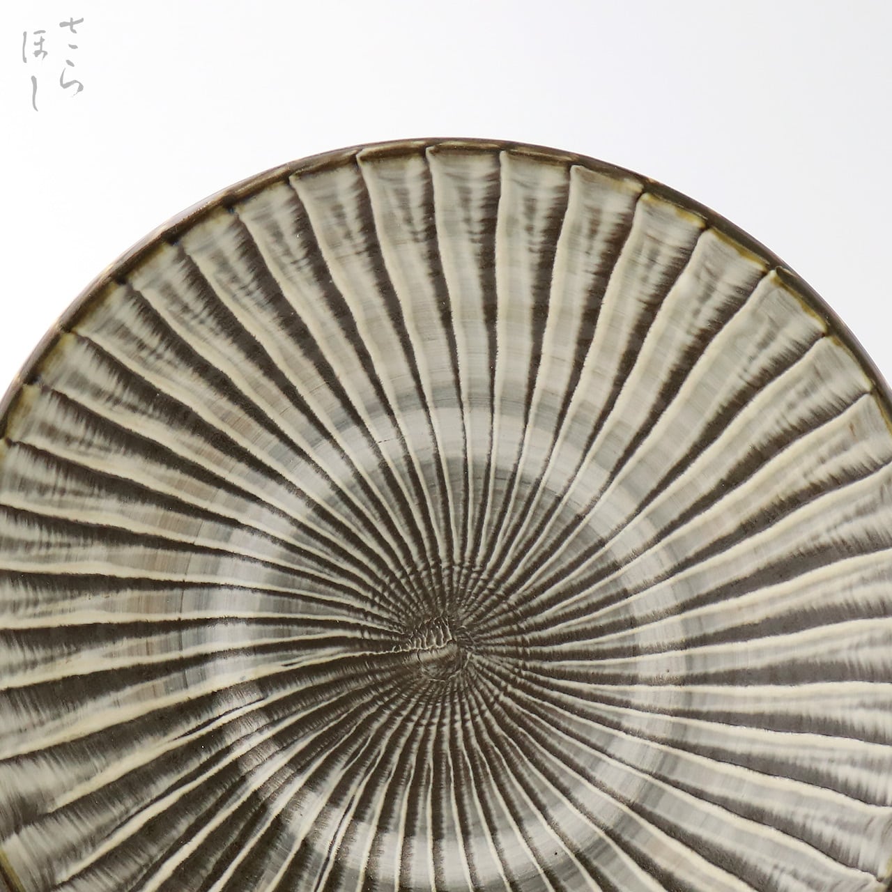 小鹿田焼はお皿等を複数枚重ねて焼きます。その際、重なった部分がくっついてしまわないよう、釉薬を剥がした跡が白い円(目剥ぎ)となって現れます。一番上で焼かれたものは目剥ぎがありません。目剥ぎは、兄弟窯の小石原焼にはなく、小鹿田焼の特徴のひとつでもあります。ご注文の際は目剥ぎの有無をご指定いただけません。ご了承ください。