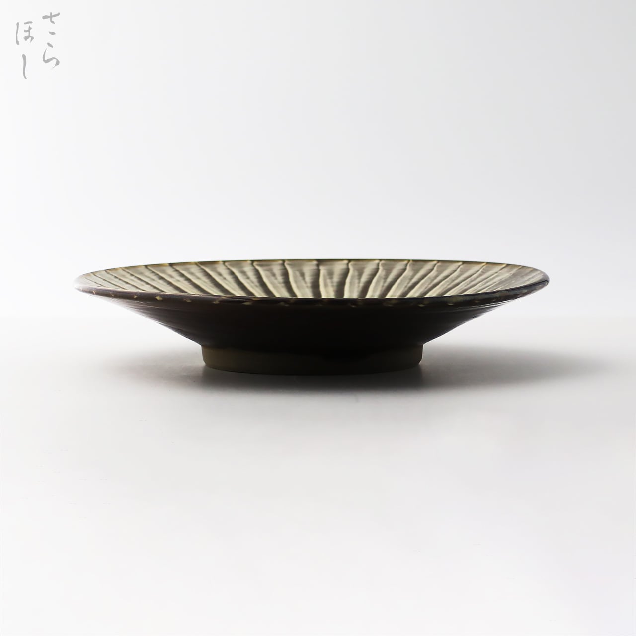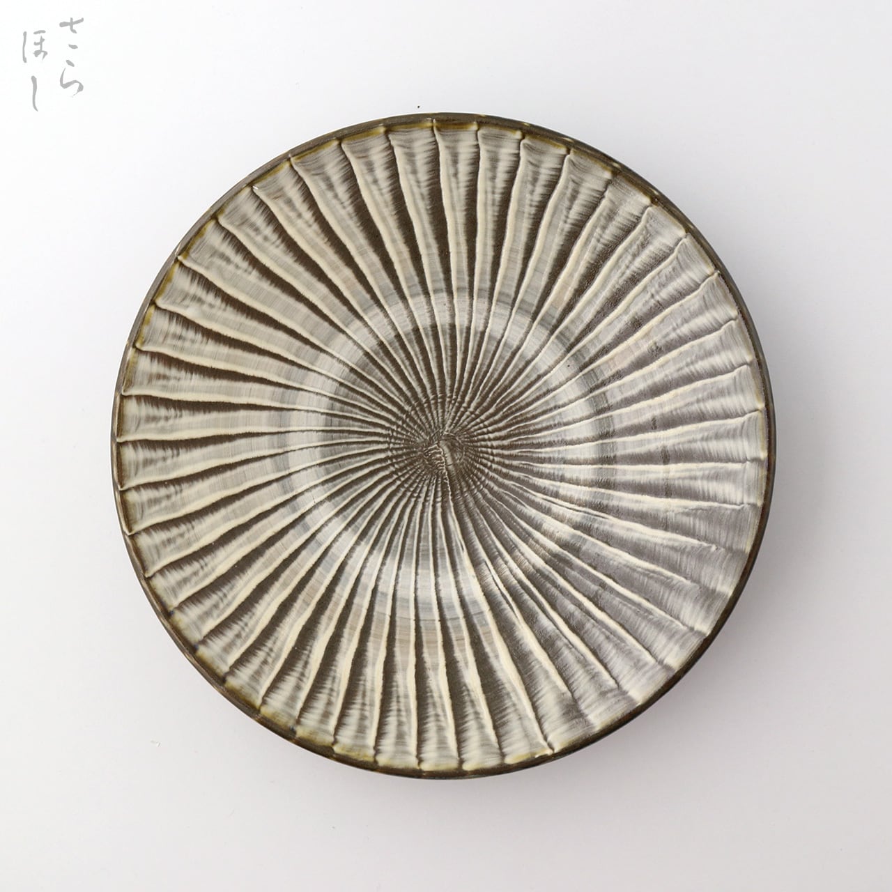 ・お皿等、窯で重ねて焼くものには、中央付近に白い円(目剥ぎ)があるものと無いものがあります。ご注文の際は目剥ぎの有無をご指定いただけません。ご了承ください。重なった部分がくっついてしまわないよう、釉薬を剥がした跡が白い円となって現れたものす。一番上で焼かれたものや、重ねずに焼かれたものには目剥ぎがありません。