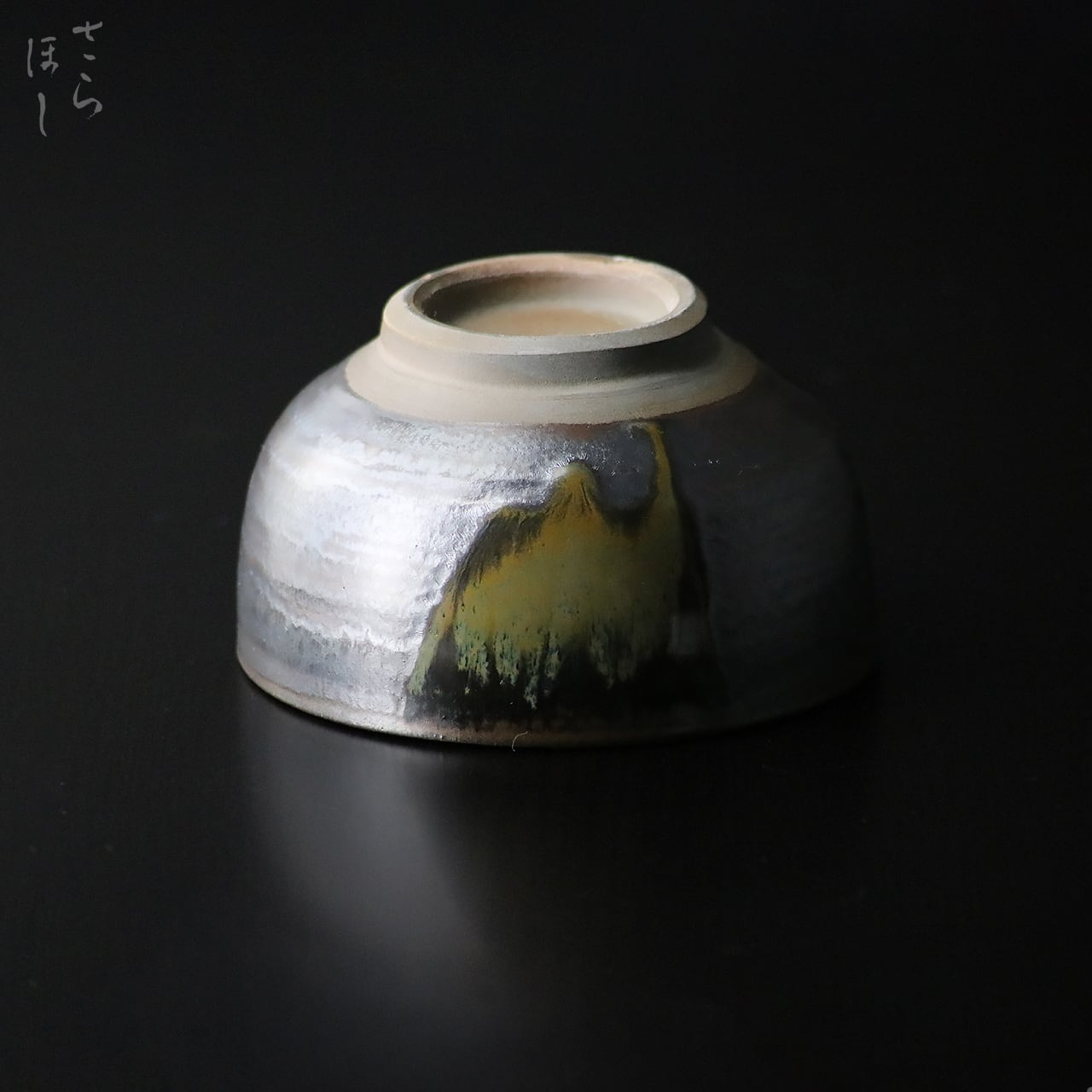 ・お皿等、窯で重ねて焼くものには、中央付近に白い円(目剥ぎ)があるものと無いものがあります。ご注文の際は目剥ぎの有無をご指定いただけません。ご了承ください。重なった部分がくっついてしまわないよう、釉薬を剥がした跡が白い円となって現れたものす。一番上で焼かれたものや、重ねずに焼かれたものには目剥ぎがありません。