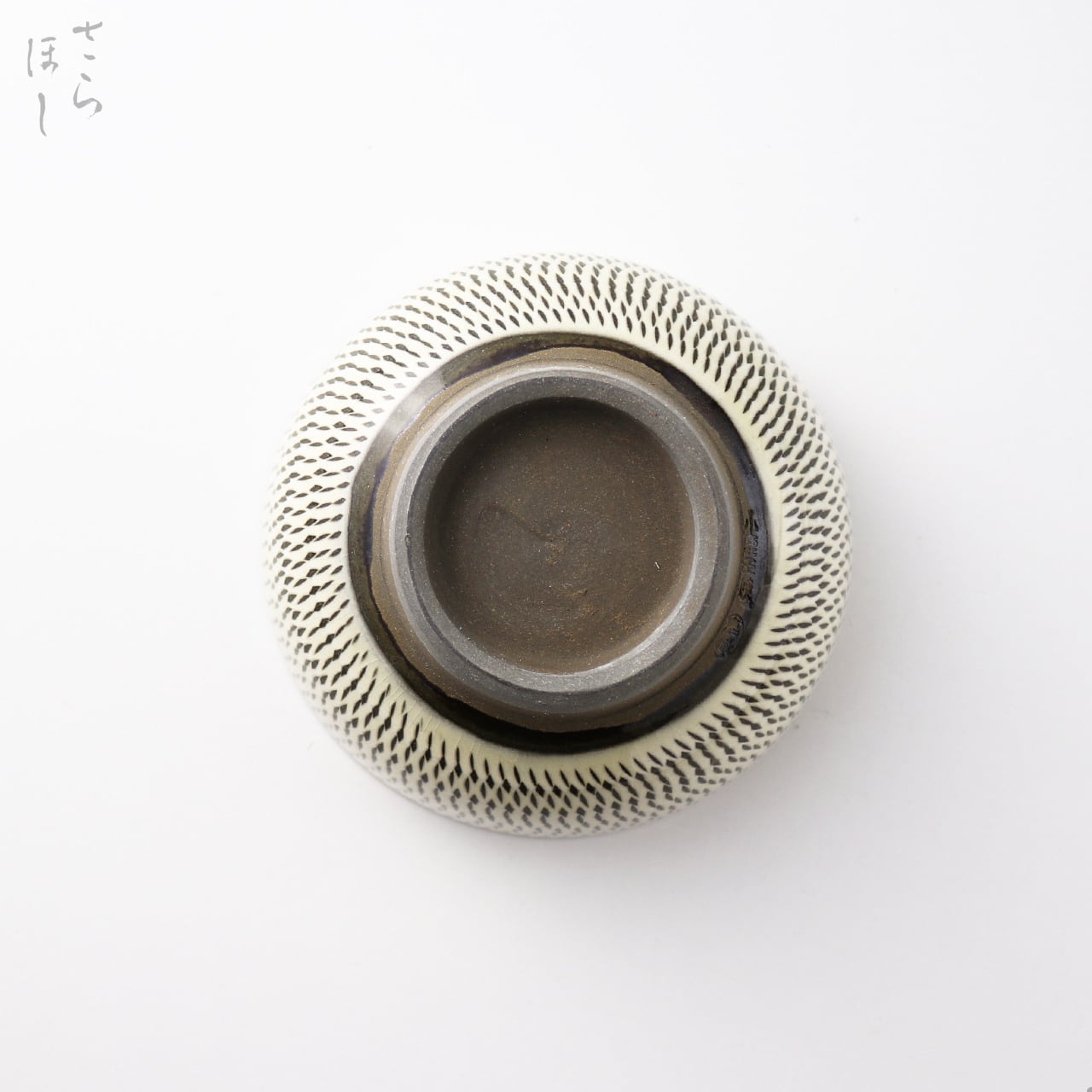 ・お皿等、窯で重ねて焼くものには、中央付近に白い円(目剥ぎ)があるものと無いものがあります。ご注文の際は目剥ぎの有無をご指定いただけません。ご了承ください。重なった部分がくっついてしまわないよう、釉薬を剥がした跡が白い円となって現れたものす。一番上で焼かれたものや、重ねずに焼かれたものには目剥ぎがありません。