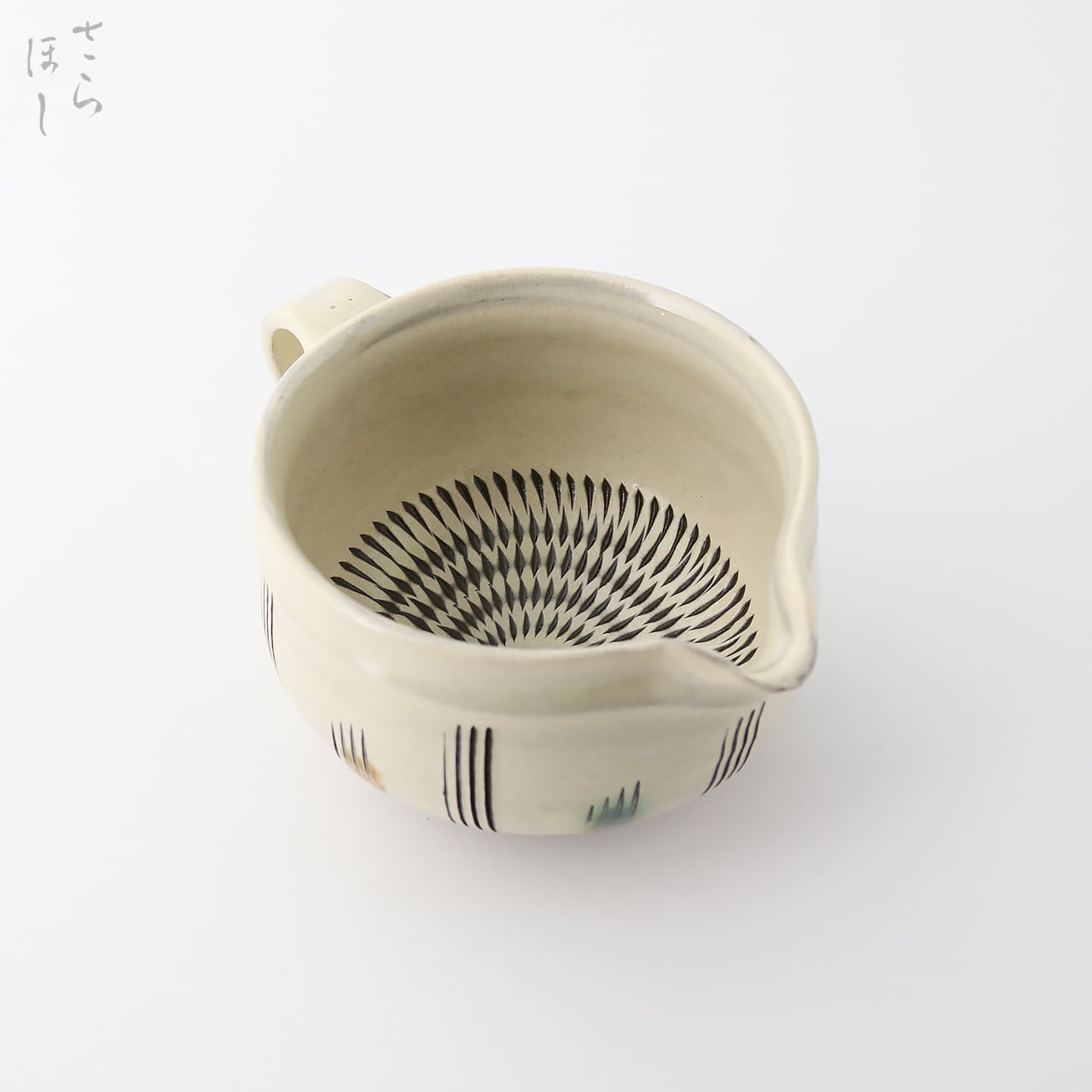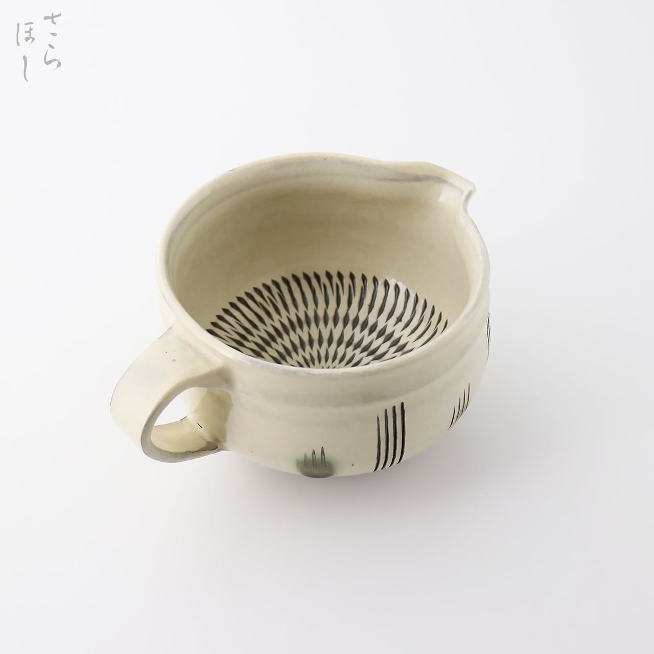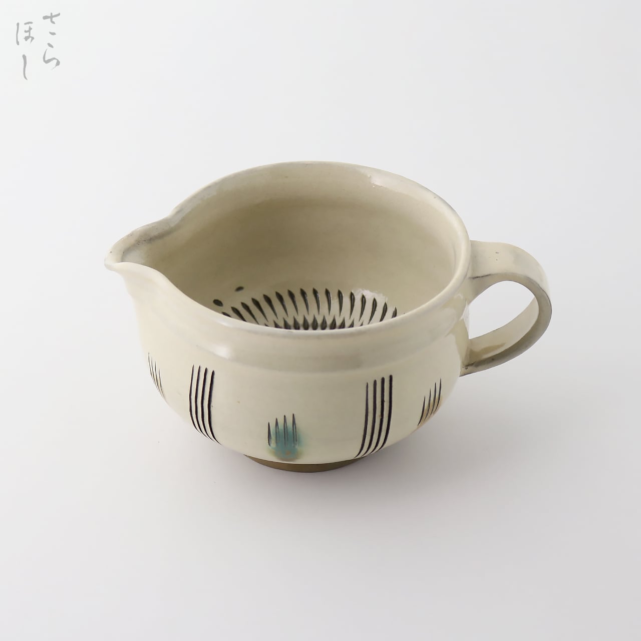 小鹿田焼 小袋窯 3寸5分手付き湯さまし 片口鉢 飛びかんな/櫛描き 白 直径約12cm 陶器 和食器 民藝 茶道具