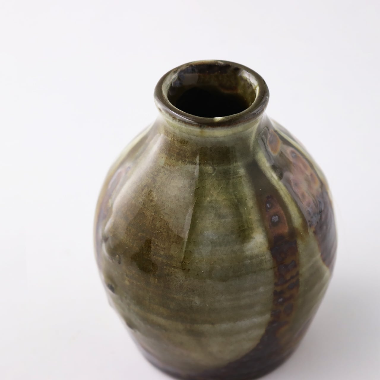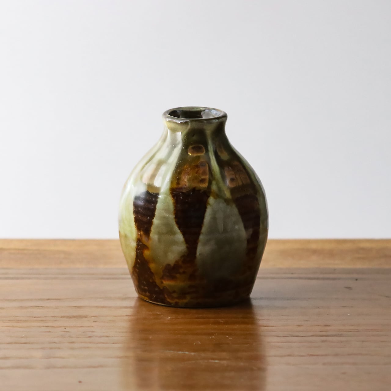 小鹿田焼 小袋窯 一輪挿し花瓶 掛け分け 茶 高さ約10cm 陶器 雑貨 民藝