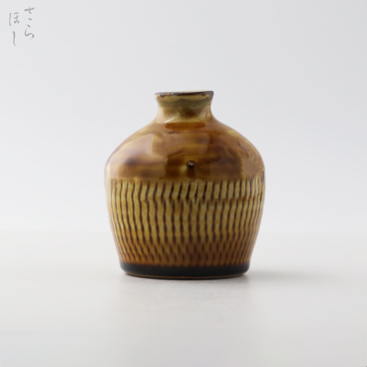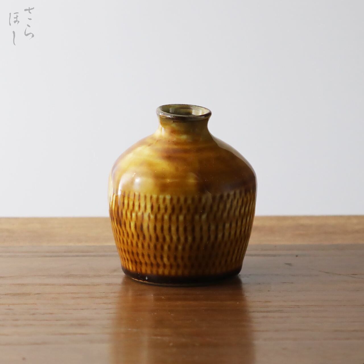 小鹿田焼 小袋窯 一輪挿し花瓶 飛び鉋 飴 高さ約9cm 陶器 雑貨 民藝