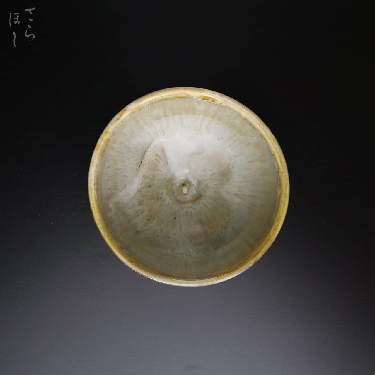 ・お皿等、窯で重ねて焼くものには、中央付近に白い円(目剥ぎ)があるものと無いものがあります。ご注文の際は目剥ぎの有無をご指定いただけません。ご了承ください。重なった部分がくっついてしまわないよう、釉薬を剥がした跡が白い円となって現れたものす。一番上で焼かれたものや、重ねずに焼かれたものには目剥ぎがありません。