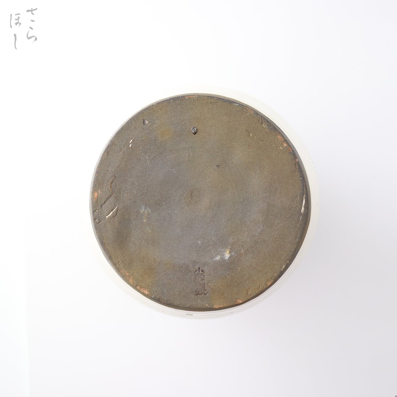 ・お皿等、窯で重ねて焼くものには、中央付近に白い円(目剥ぎ)があるものと無いものがあります。ご注文の際は目剥ぎの有無をご指定いただけません。ご了承ください。重なった部分がくっついてしまわないよう、釉薬を剥がした跡が白い円となって現れたものす。一番上で焼かれたものや、重ねずに焼かれたものには目剥ぎがありません。