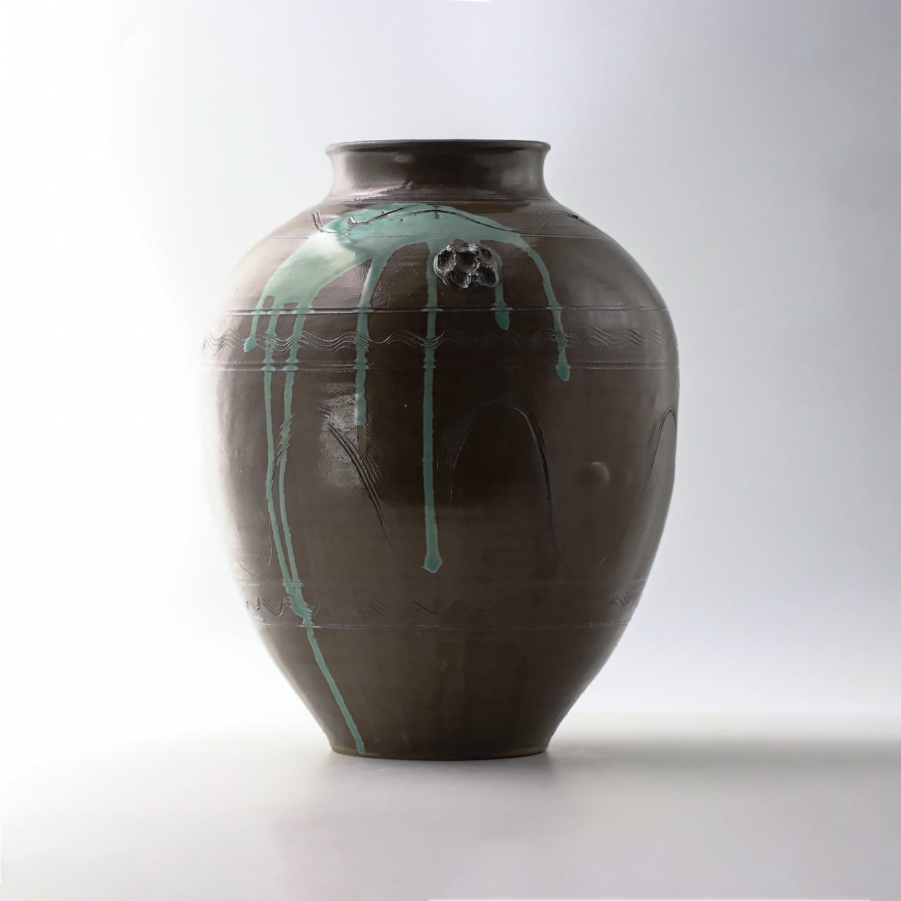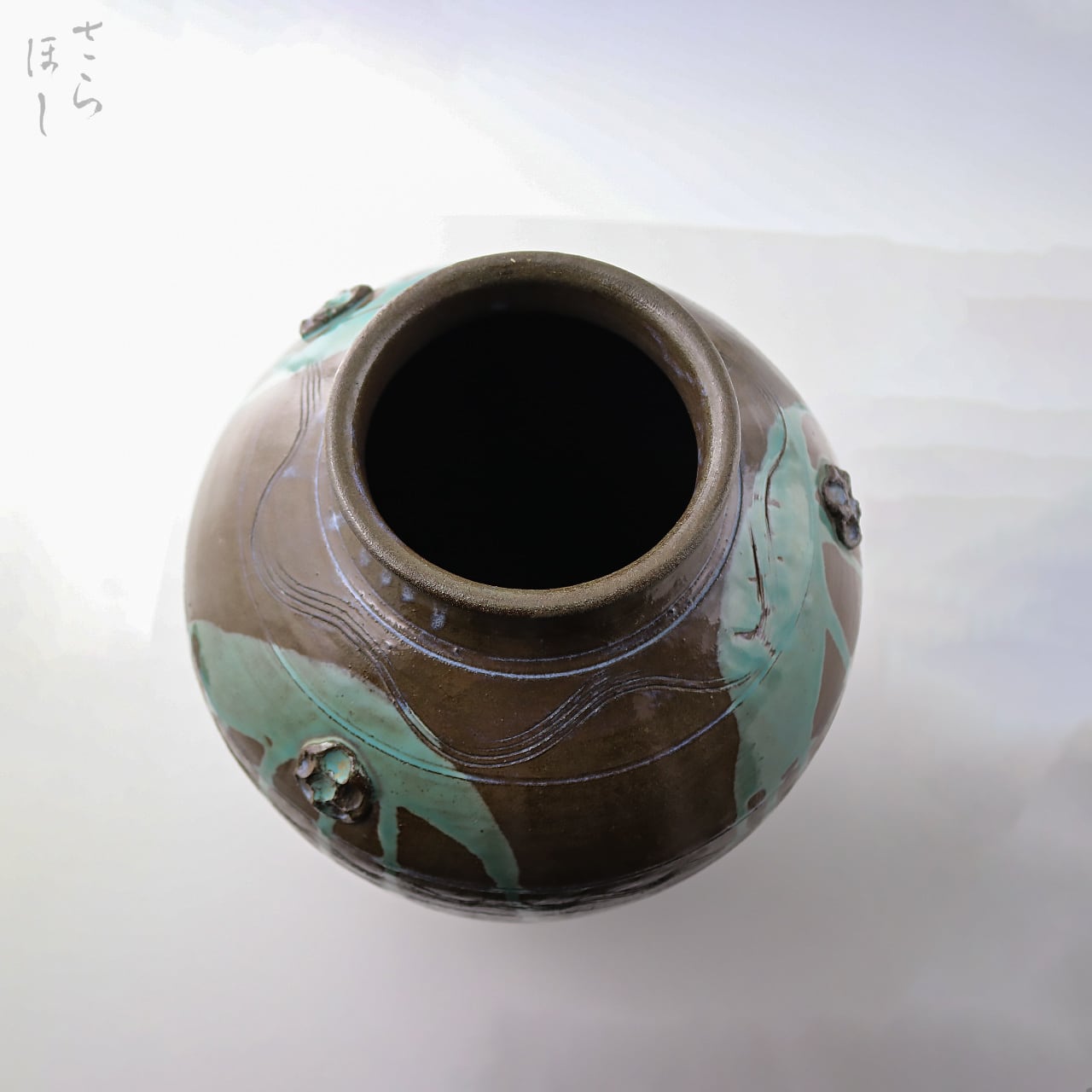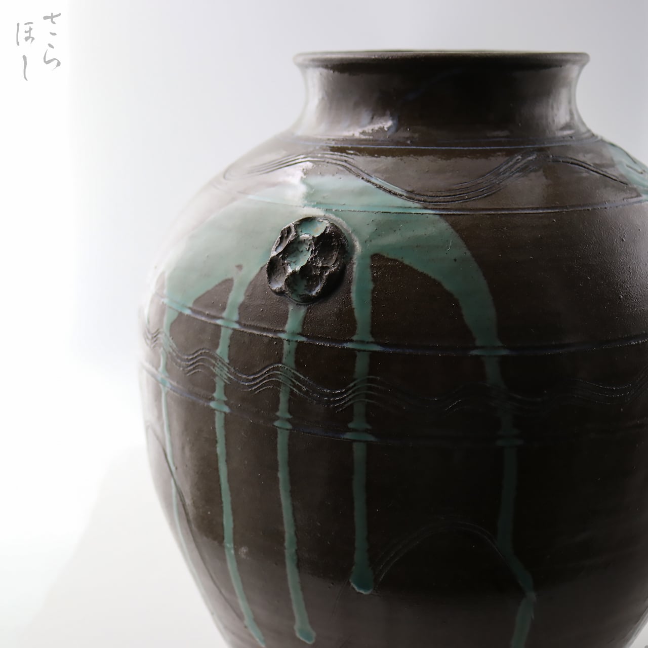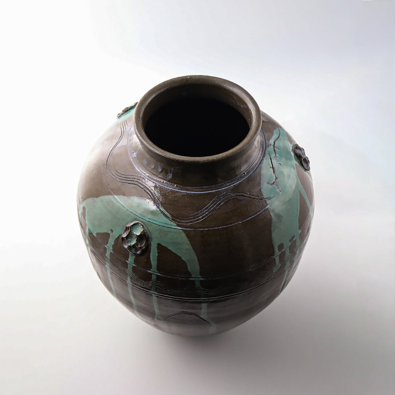 小鹿田焼(おんたやき)の耳付き7升丸花瓶茶壷型です。