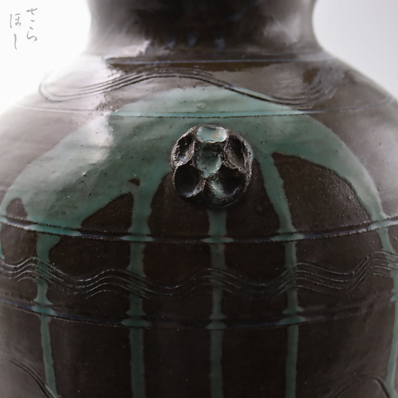 【一点もの】小鹿田焼 小袋窯 耳付き7升丸花瓶 茶壷型 櫛描き/打ち掛け 高さ約34.7cm 花器 茶道具 民藝