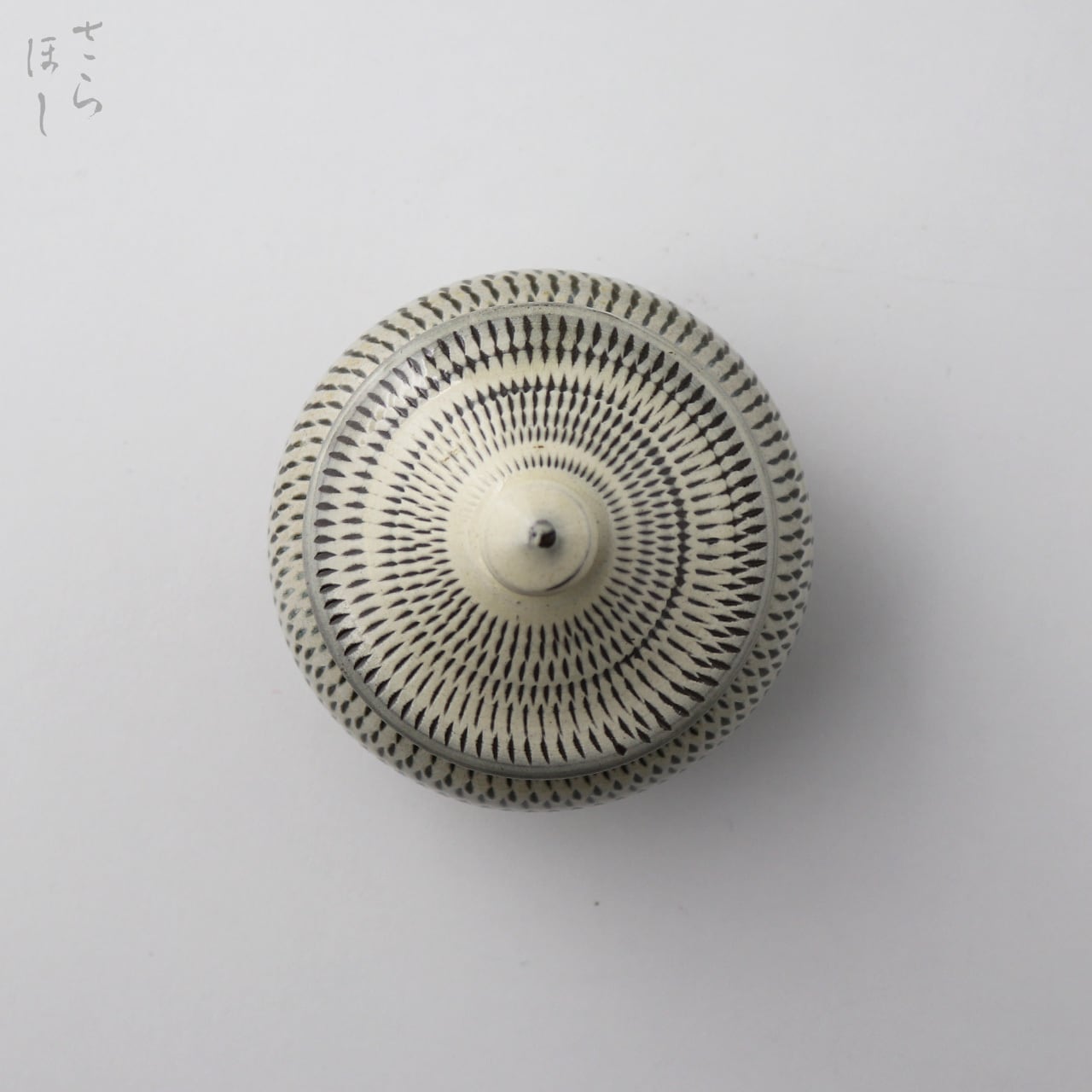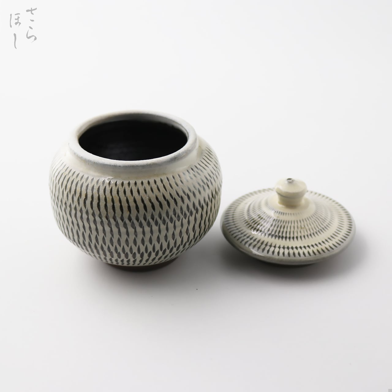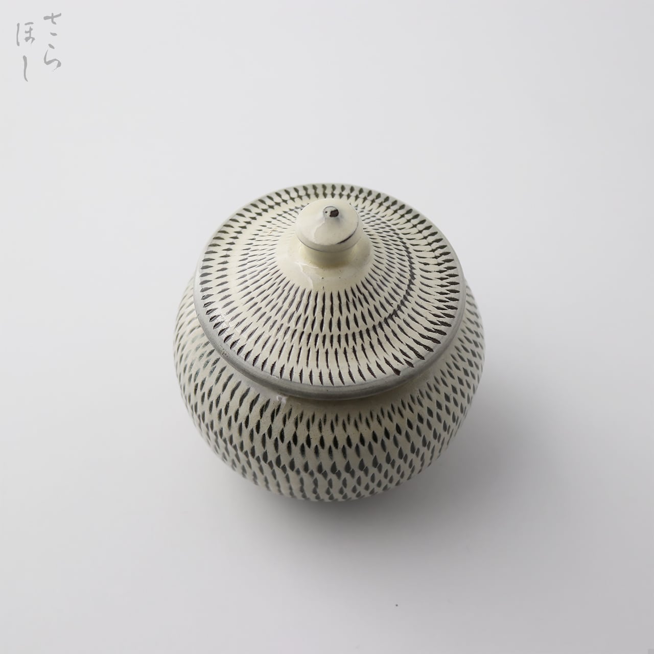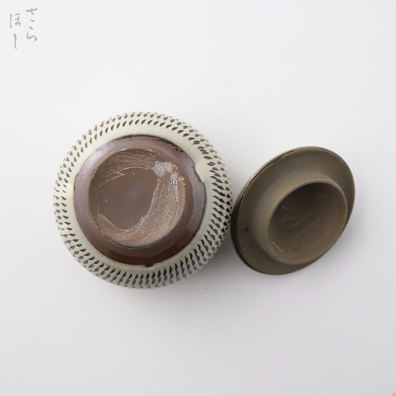 器の外側に小鹿田焼の伝統技法である「飛び鉋(かんな)」を施しています。弾力性のある金属で作った鉋を使用し、細かい連続的な削り目をつけ模様をつける技法です。