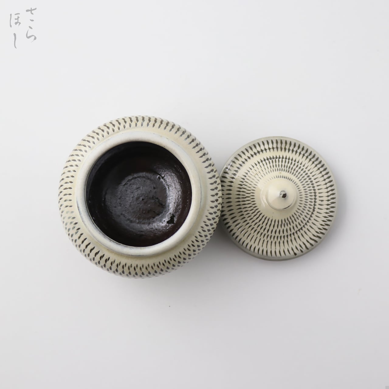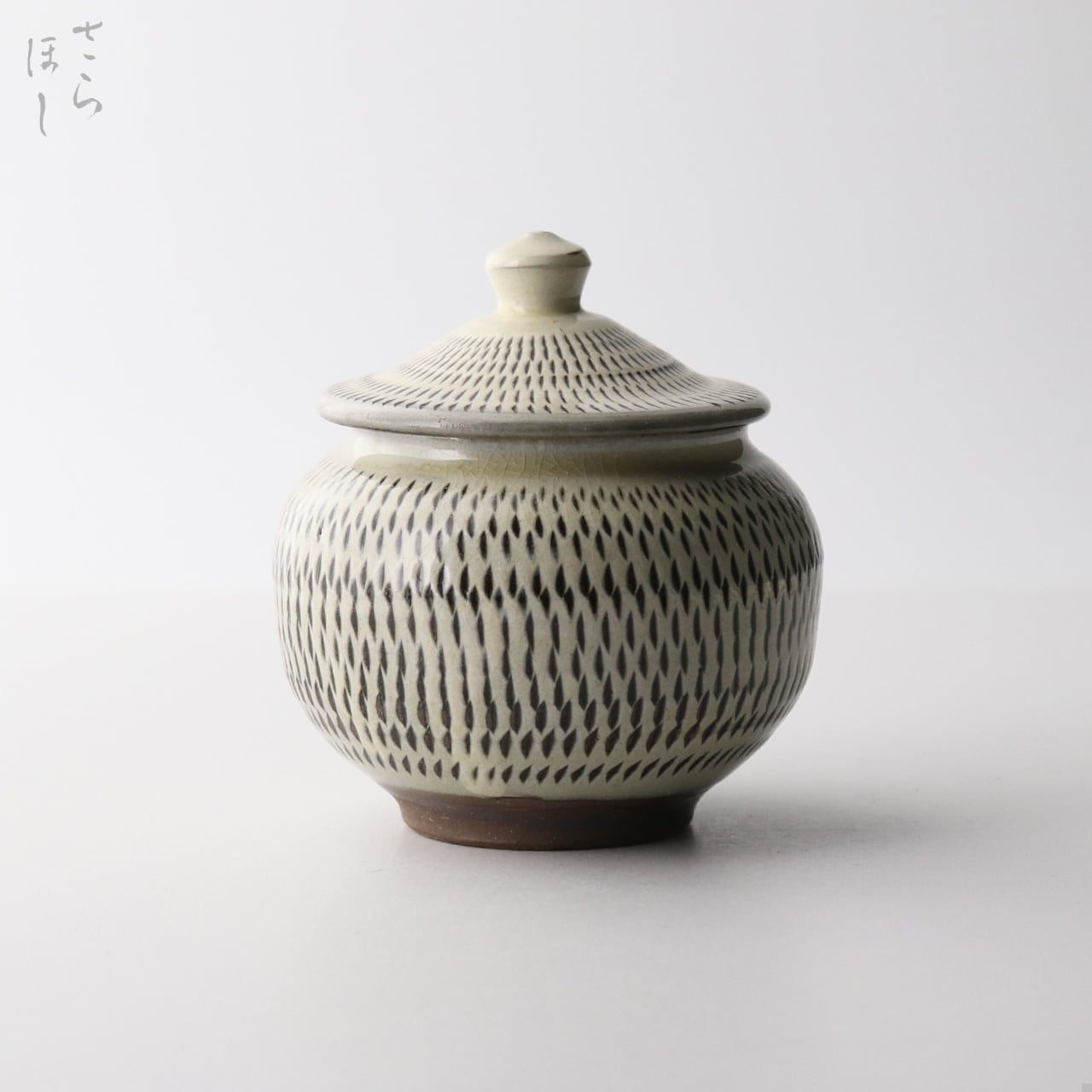 直径約9cmの蓋付き容器です。もとは、地域の特産品で鮎の内蔵を使った塩辛「うるか」を保存するための容器で「うるか壷」と呼ばれています。調味料、薬味、佃煮、梅干し、振り掛けなどの容器やシュガーポットなどに。