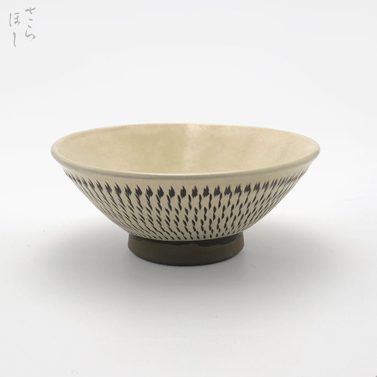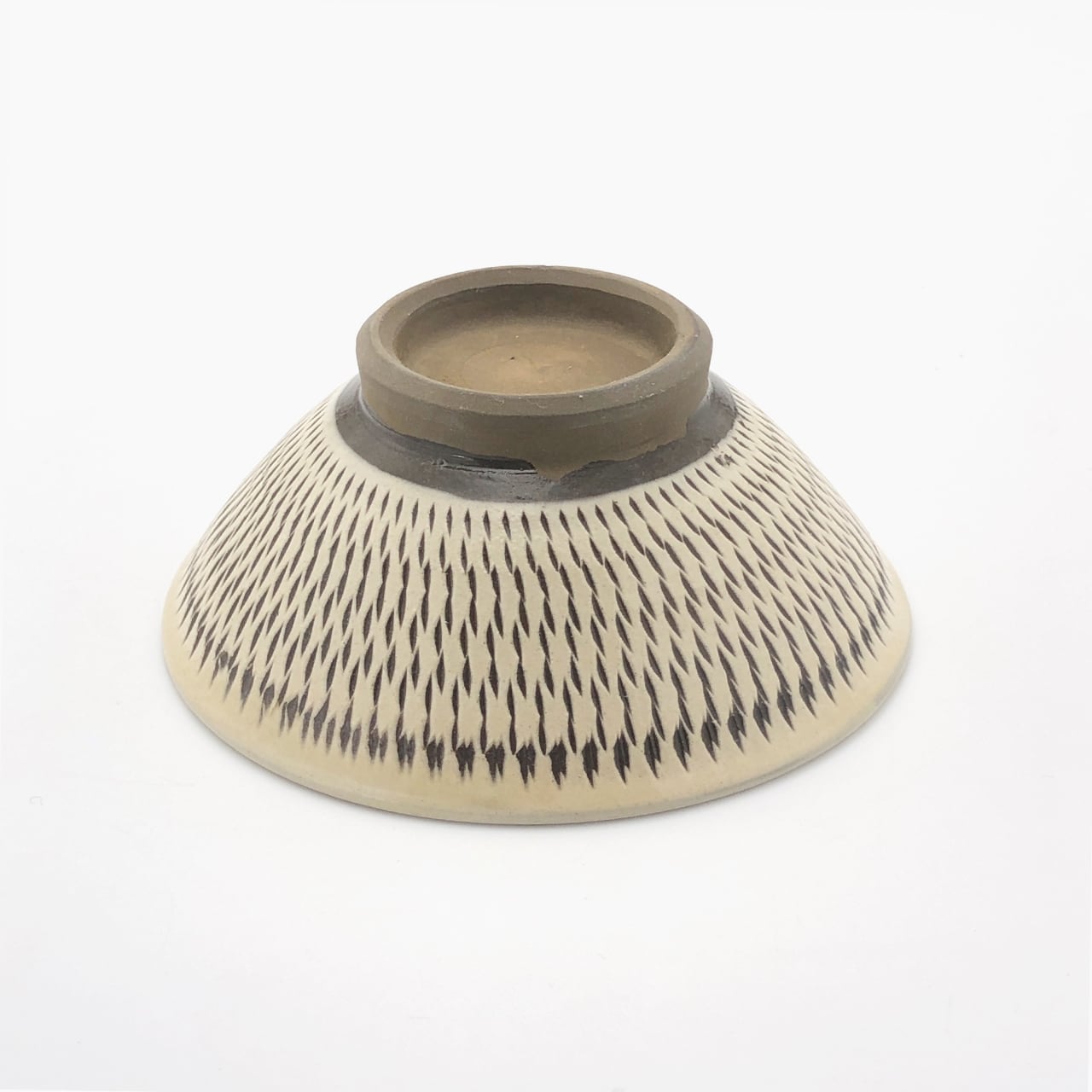 器の外側に小鹿田焼の伝統技法である「飛び鉋(かんな)」を施しています。弾力性のある金属で作った鉋を使用し、細かい連続的な削り目をつけ独特な模様をつける技法です。