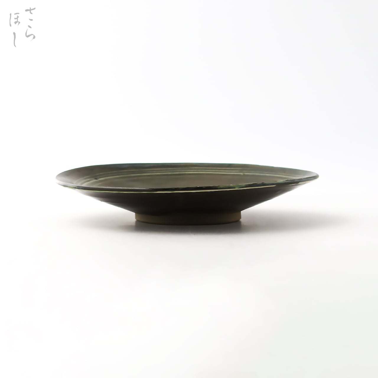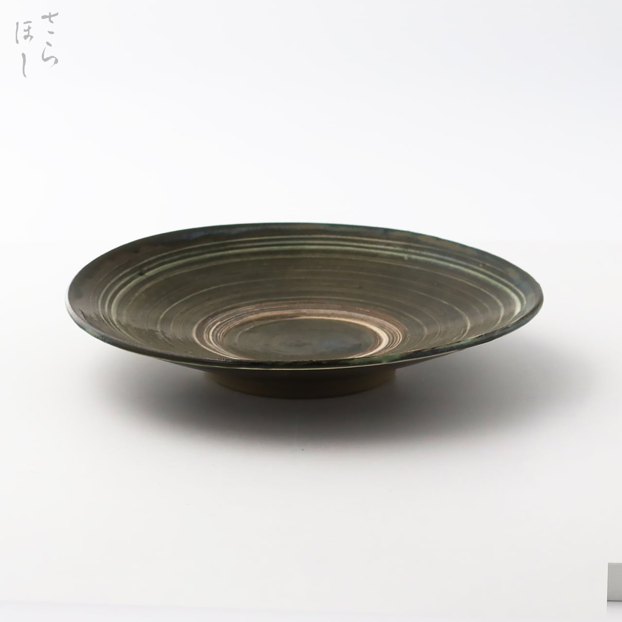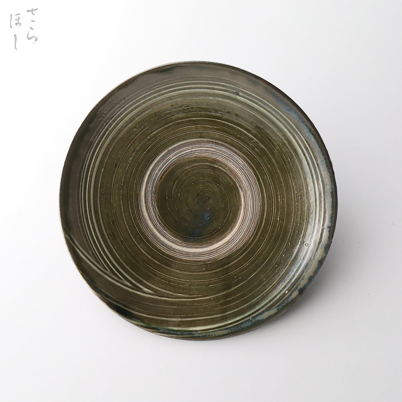 小鹿田焼 小袋窯 7寸皿 藁引き 緑 直径約21cm 中皿 陶器 和食器 民藝