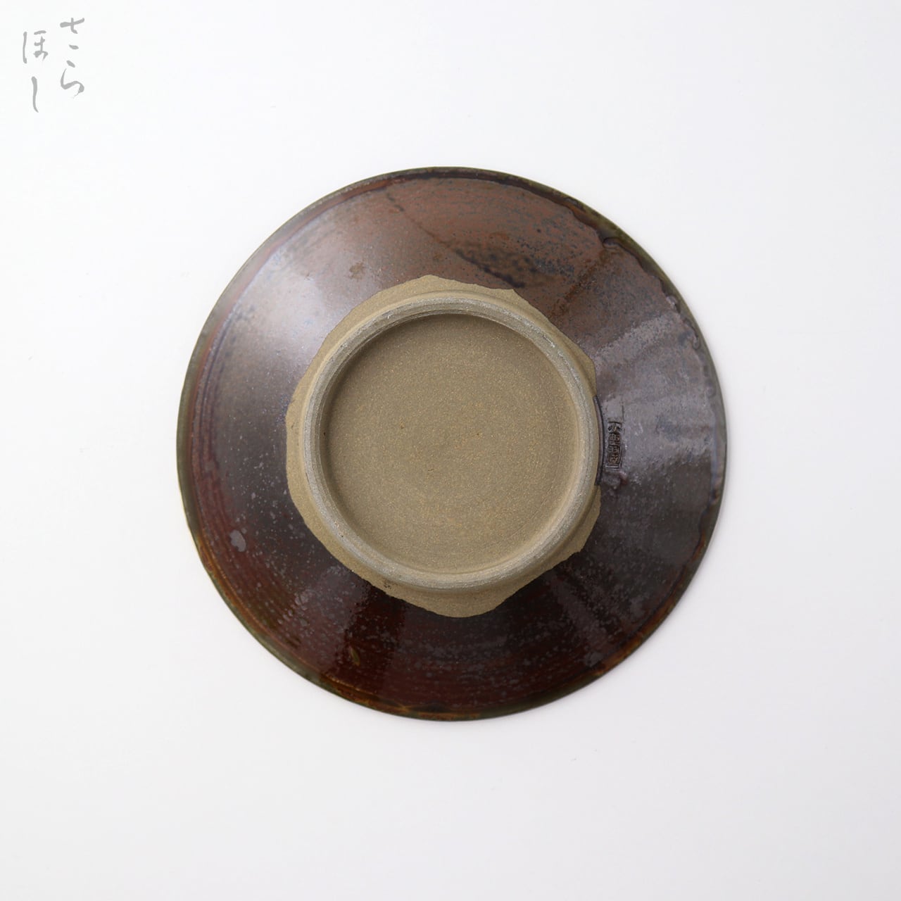・お皿等、窯で重ねて焼くものには、中央付近に白い円(目剥ぎ)があるものと無いものがあります。ご注文の際は目剥ぎの有無をご指定いただけません。ご了承ください。重なった部分がくっついてしまわないよう、釉薬を剥がした跡が白い円となって現れたものす。一番上で焼かれたものや、重ねずに焼かれたものには目剥ぎがありません。