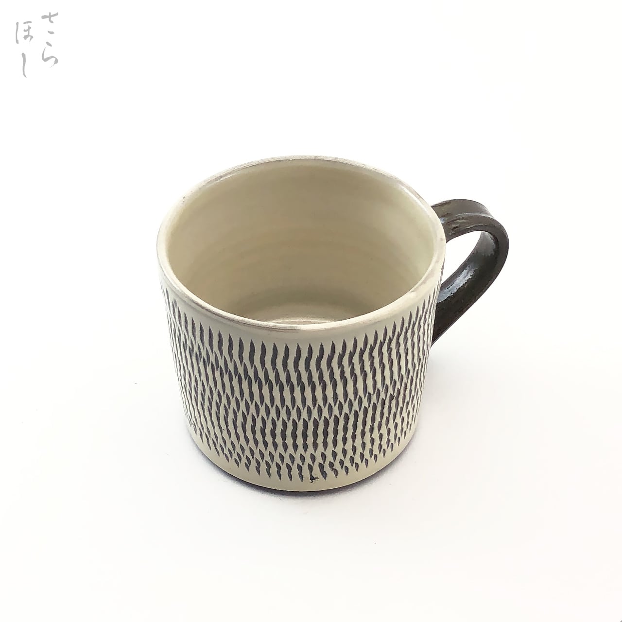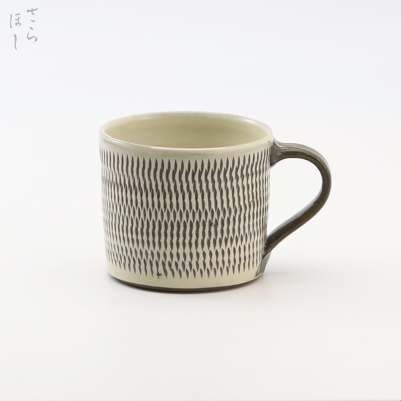 小鹿田焼 小袋窯 3寸マグカップ 蕎麦猪口型 飛びかんな 白 口径約9cm 陶器 和食器 民藝