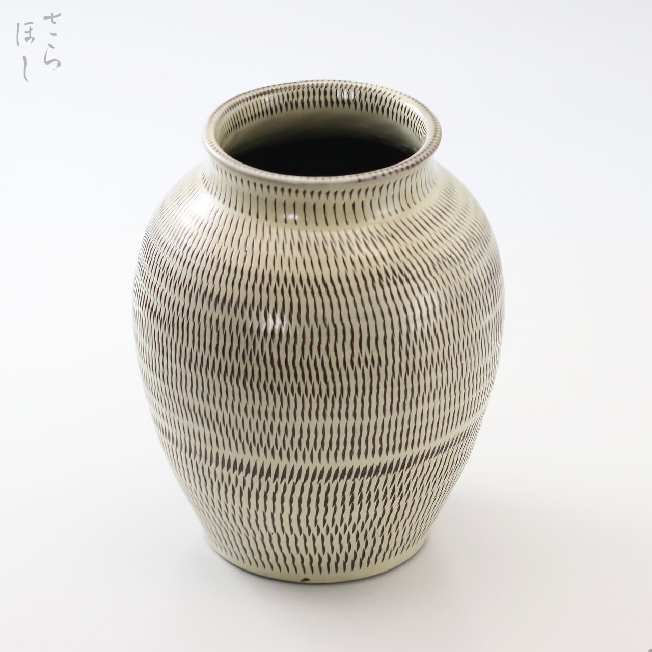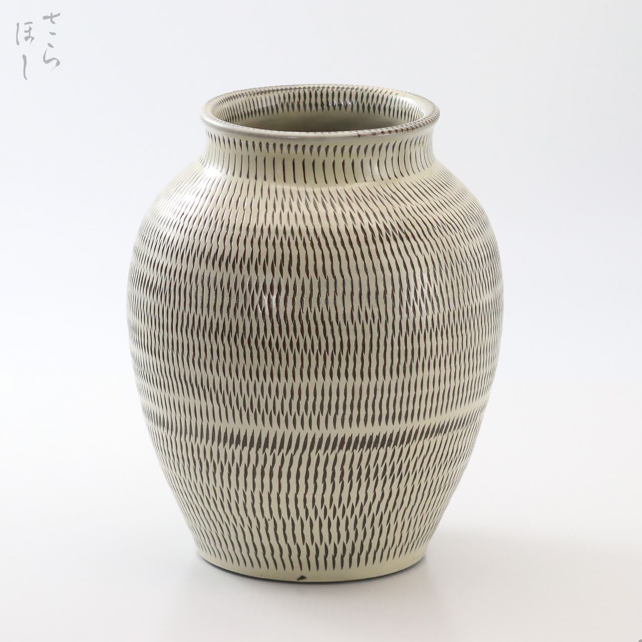 小鹿田焼 小袋窯 1升丸花瓶 飛びかんな 白 高さ約20cm 花器 茶道具 民藝