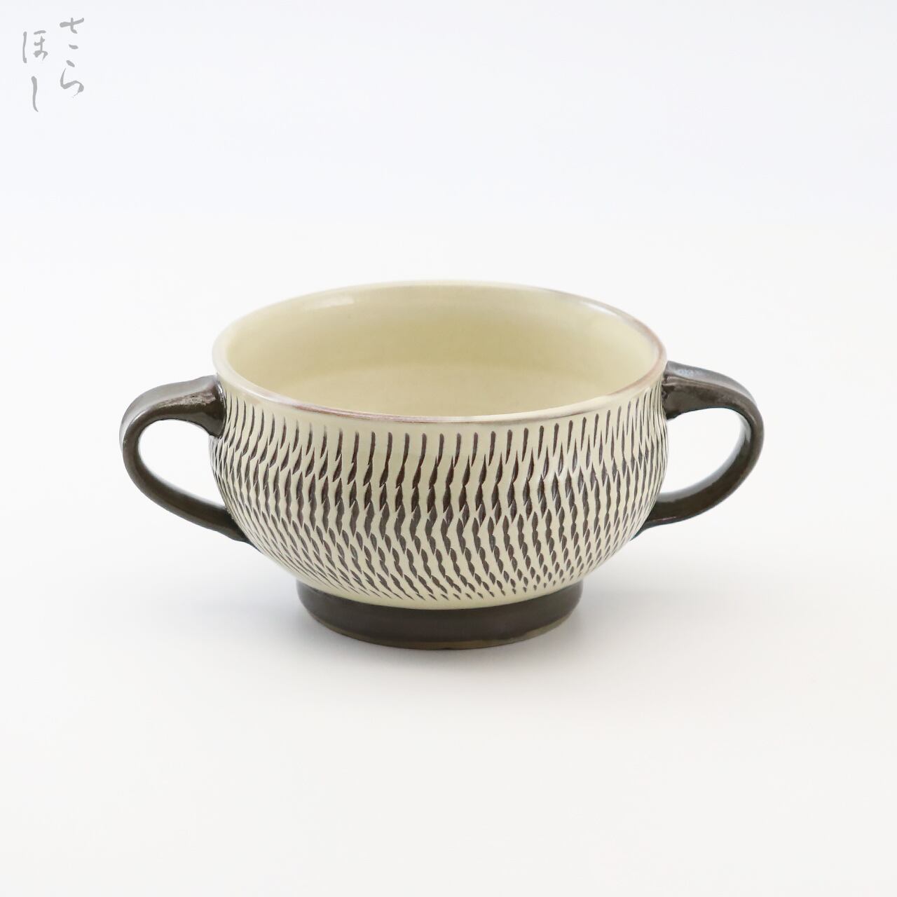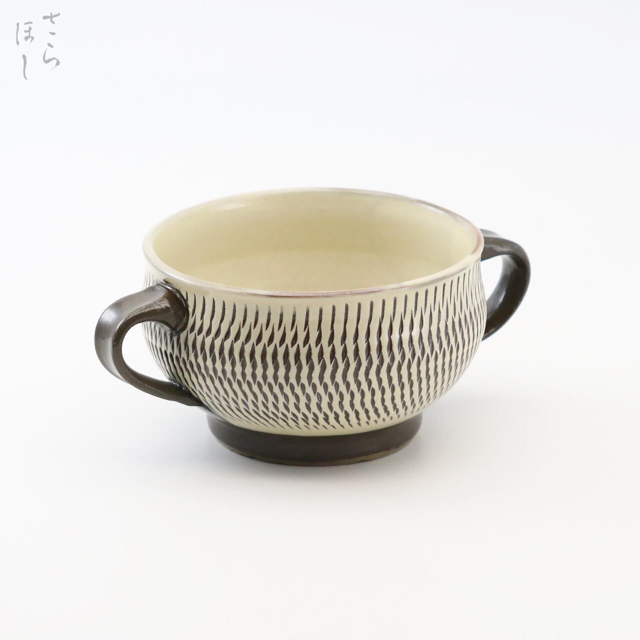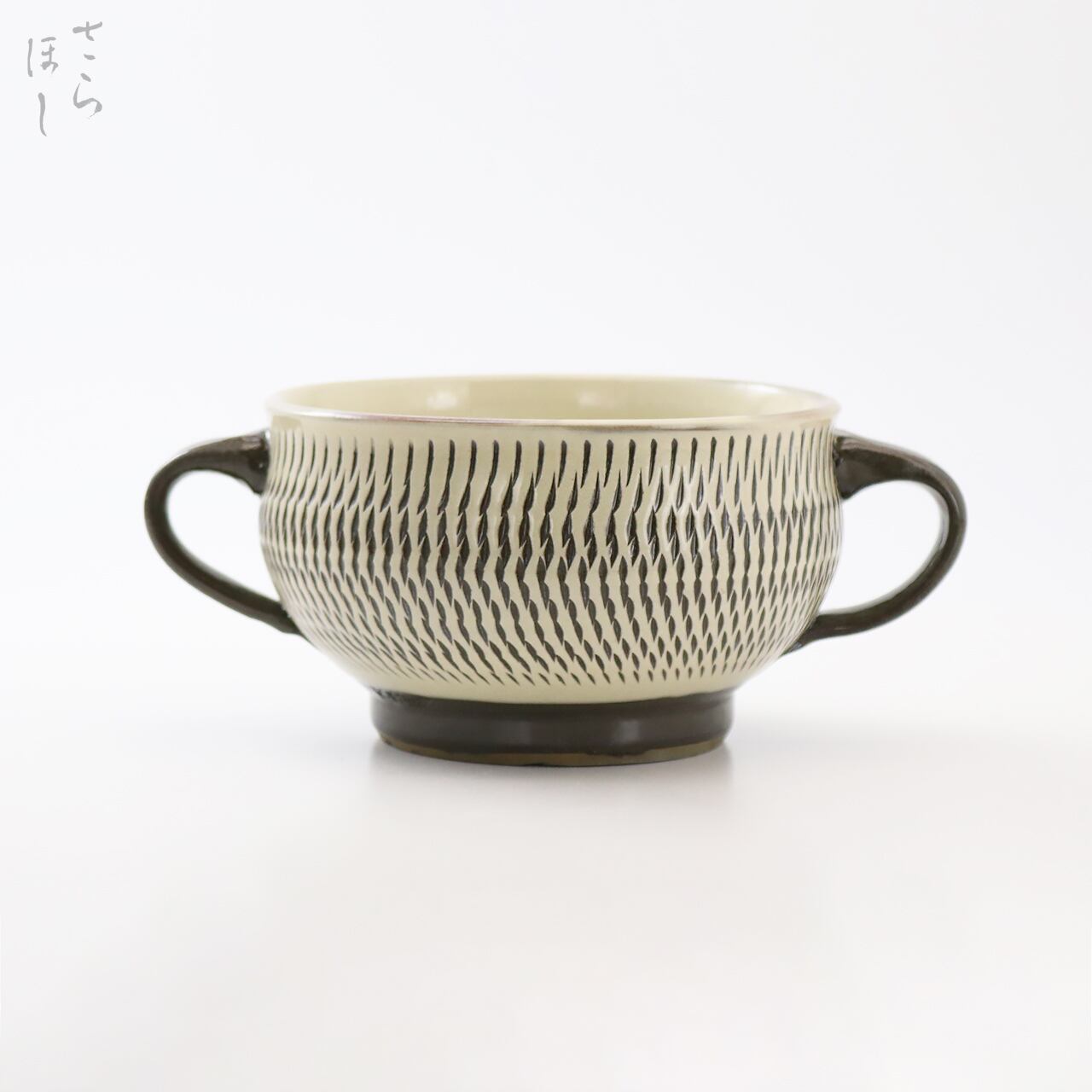小鹿田焼(おんたやき)の両手付きスープカップです。