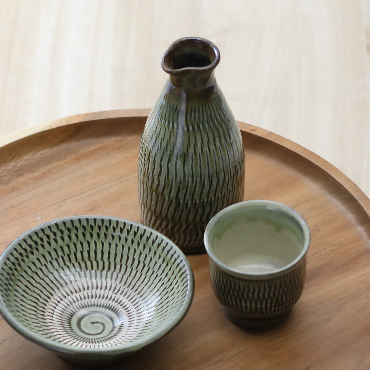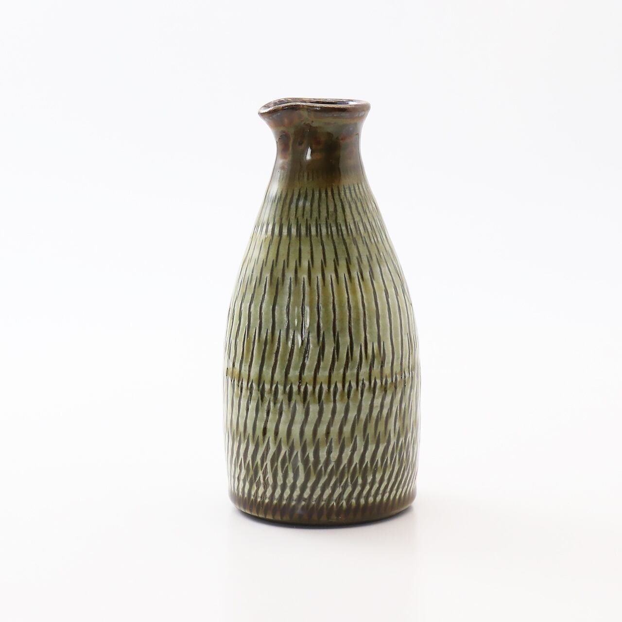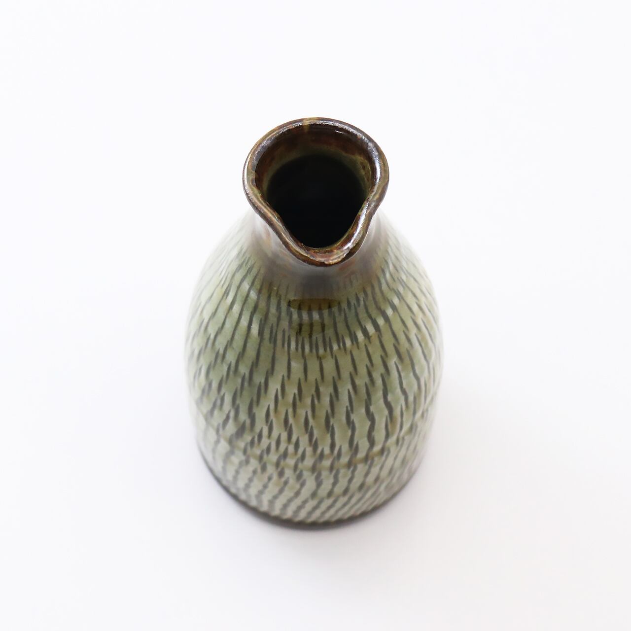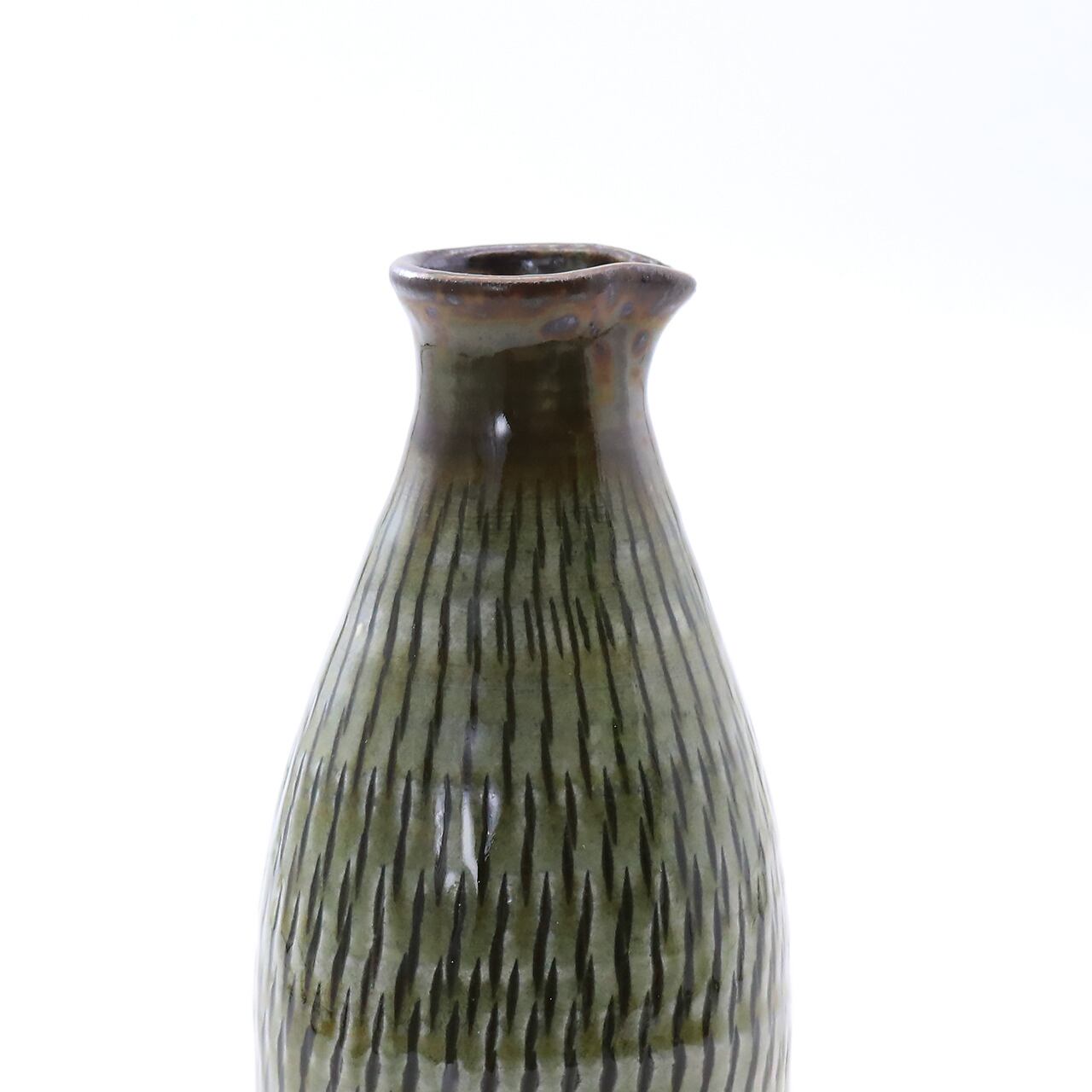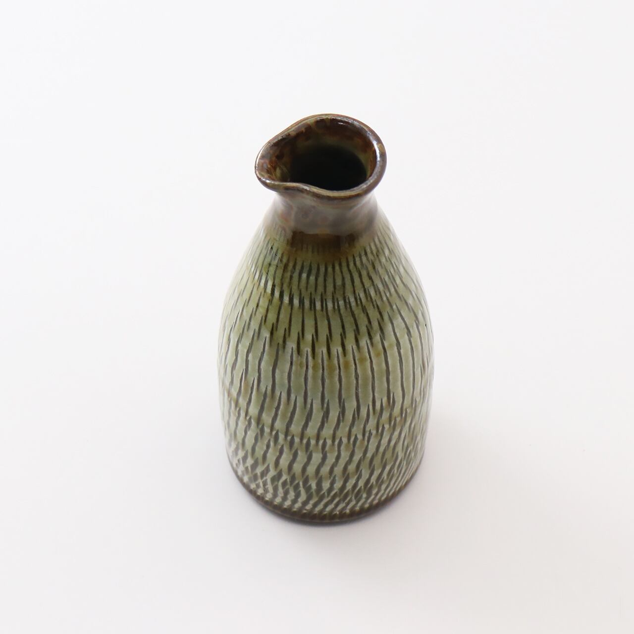 小鹿田焼 小袋窯 一合五勺徳利 飛びかんな 緑 高さ約13.5cm 陶器 和食器 酒器 民藝 花瓶