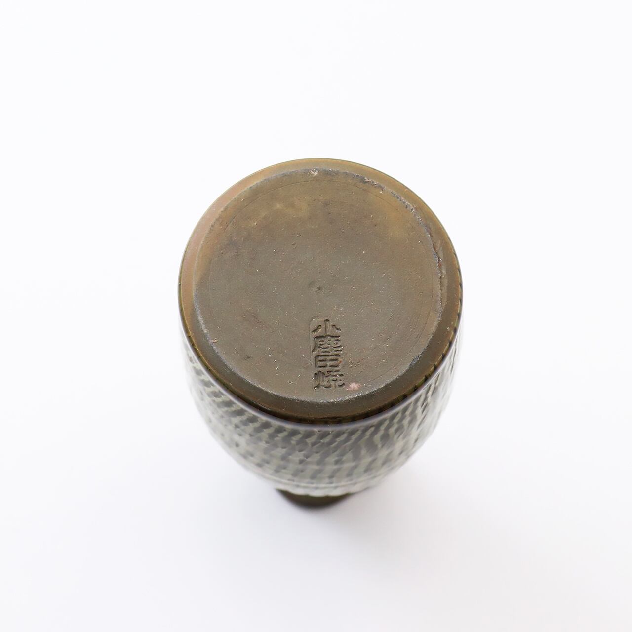器の外側に小鹿田焼の伝統技法である「飛び鉋(かんな)」を施しています。弾力性のある金属で作った鉋を使用し、細かい連続的な削り目をつけ模様をつける技法です。