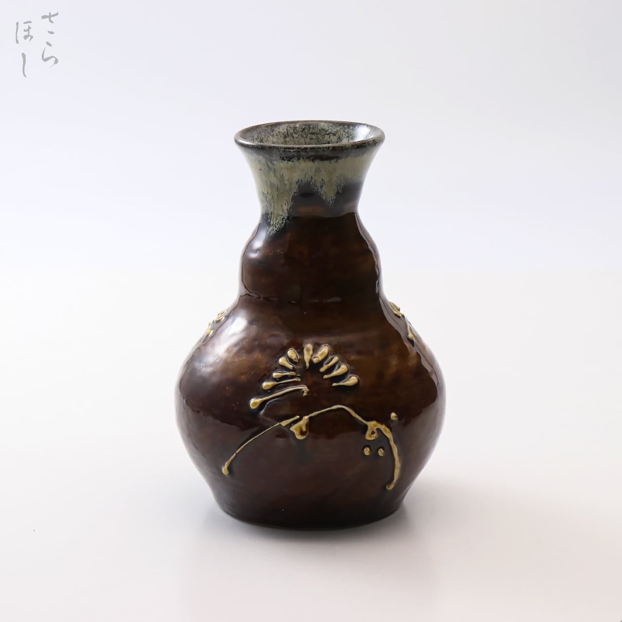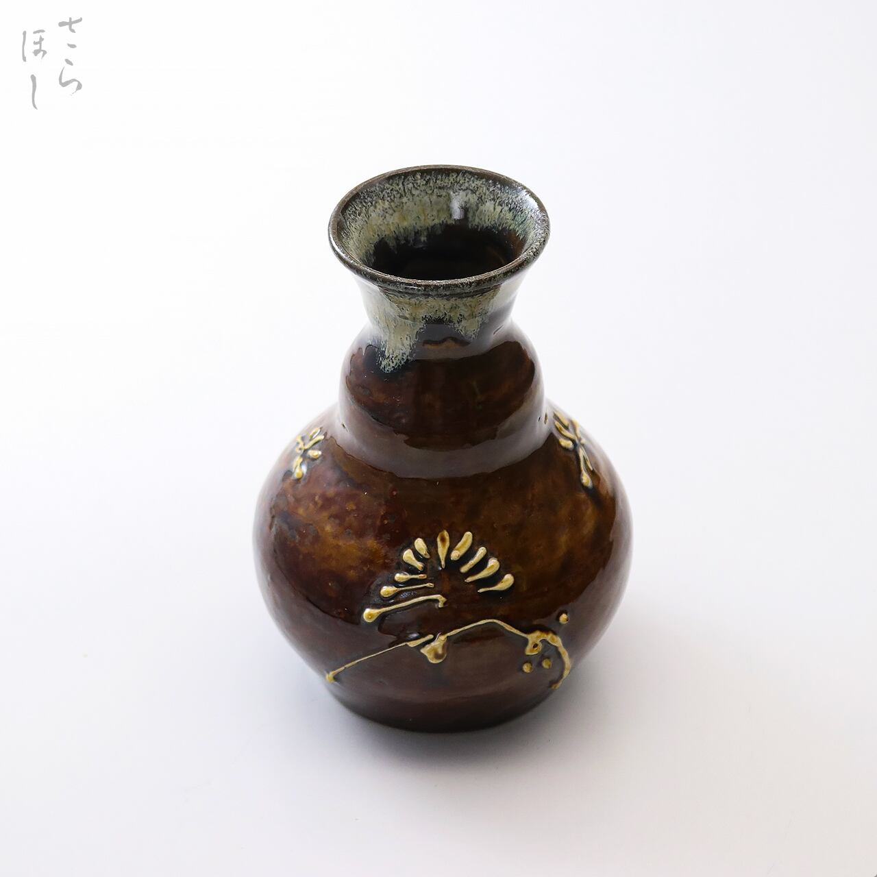 小鹿田焼 小袋窯 5寸一輪挿し 松文イッチン描き 高さ約14cm 花瓶 陶器 雑貨 民藝