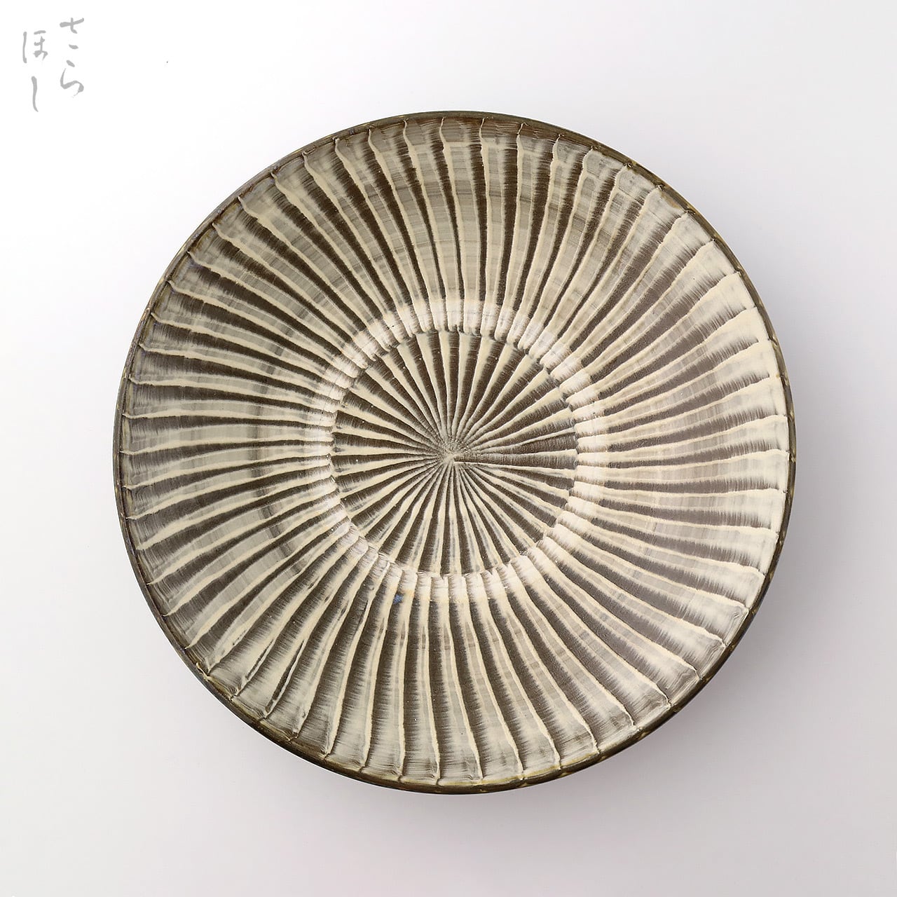 小鹿田焼はお皿等を複数枚重ねて焼きます。その際、重なった部分がくっついてしまわないよう、釉薬を剥がした跡が白い円(目剥ぎ)となって現れます。一番上で焼かれたものは目剥ぎがありません。目剥ぎは、兄弟窯の小石原焼にはなく、小鹿田焼の特徴のひとつでもあります。ご注文の際は目剥ぎの有無をご指定いただけません。ご了承ください。