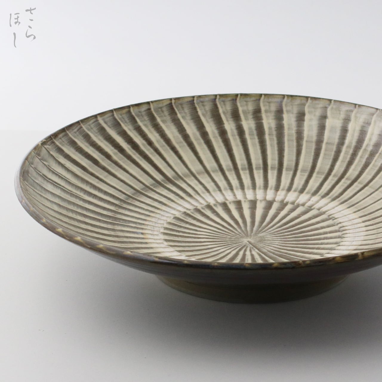 器の内側に小鹿田焼の伝統技法である「打ち刷毛目(はけめ)」を施しています。刷毛を使って化粧土をぐるりと塗り、連続的な模様をつける技法です。