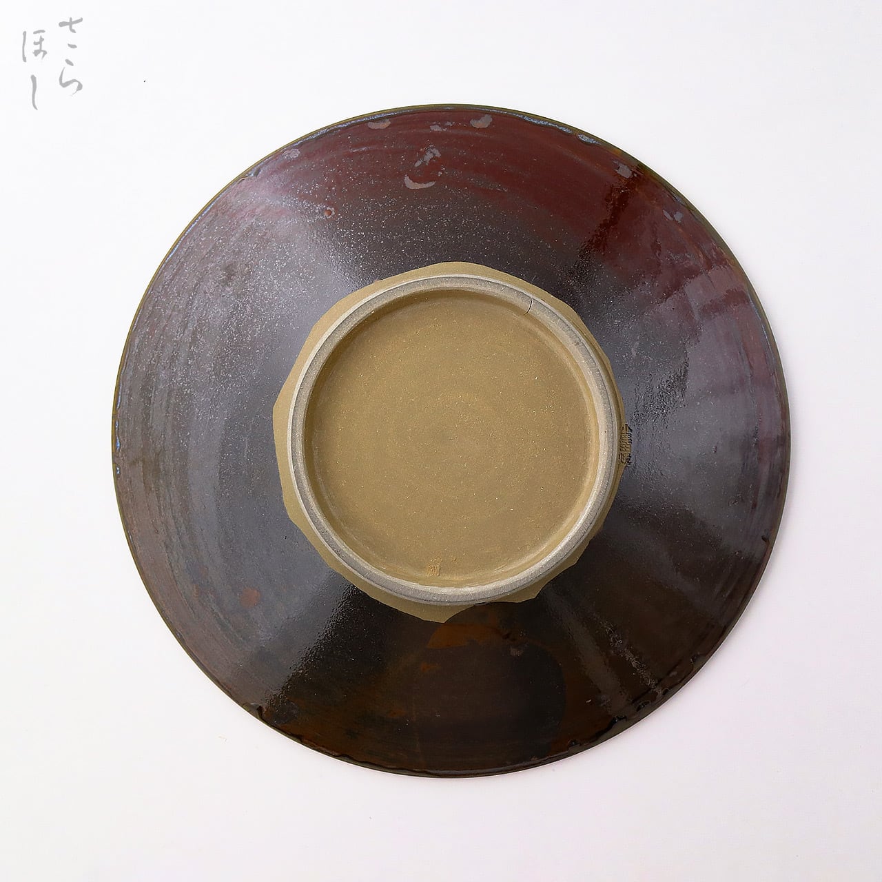 ・お皿等、窯で重ねて焼くものには、中央付近に白い円(目剥ぎ)があるものと無いものがあります。ご注文の際は目剥ぎの有無をご指定いただけません。ご了承ください。重なった部分がくっついてしまわないよう、釉薬を剥がした跡が白い円となって現れたものす。一番上で焼かれたものや、重ねずに焼かれたものには目剥ぎがありません。