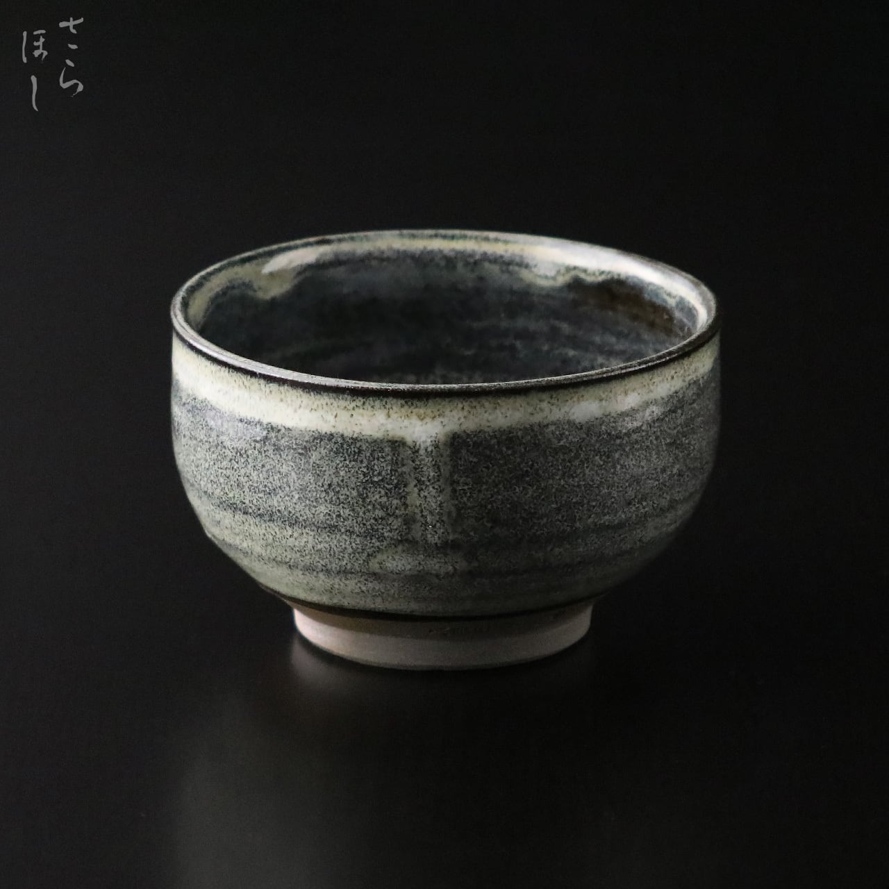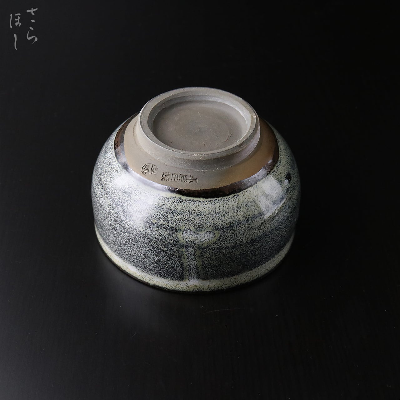 口径が約10.5cmの抹茶碗で、抹茶碗の標準サイズ4寸より小ぶりのため女性向きのサイズです。抹茶の作法の流れの一環として、お茶をいただいた後、茶碗を鑑賞するという所作があり、作り手の拘りが注ぎ込まれています。白薬の流れが神秘的な滝のようなど奥深い表情を作り出しています。