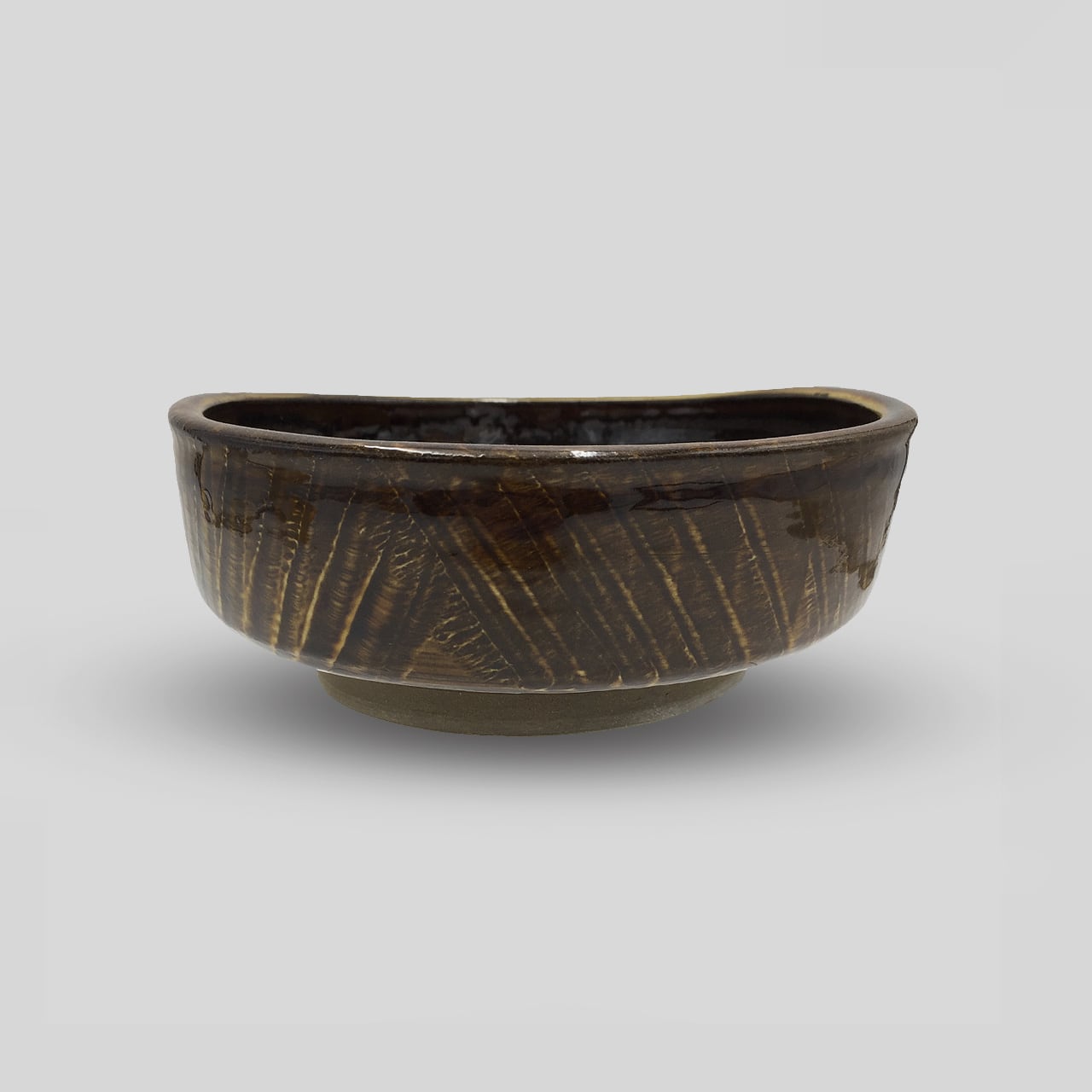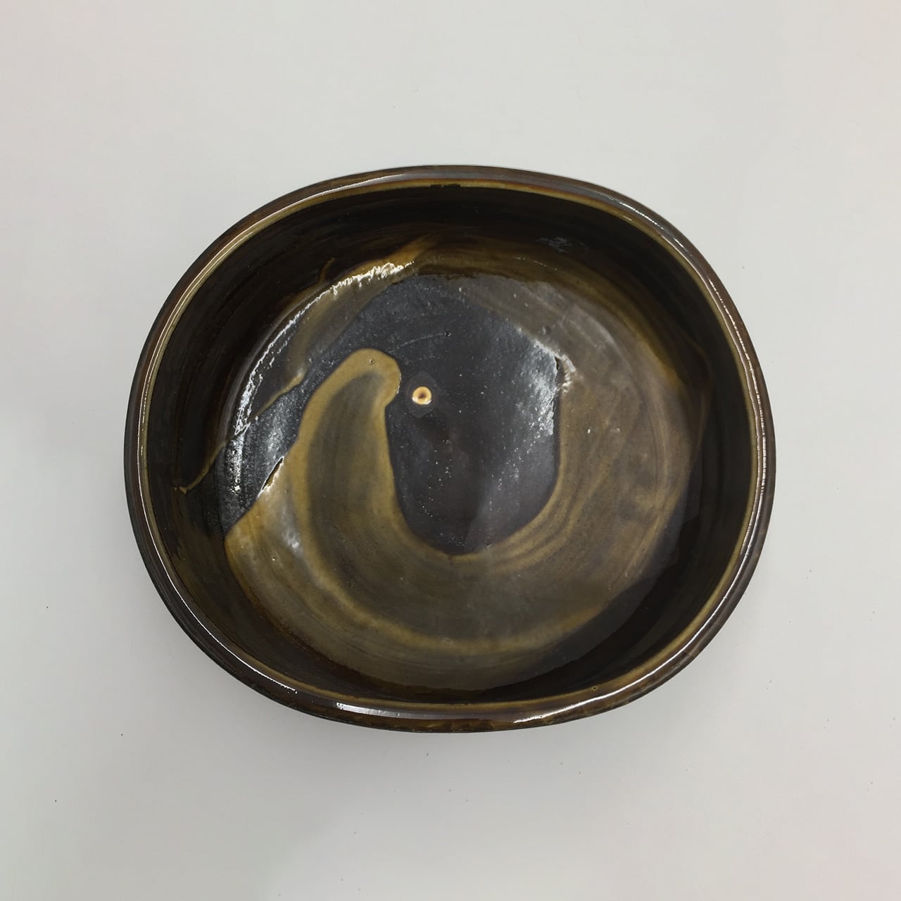 小鹿田焼(おんたやき)の7寸中鉢の変形型です。左右非対称の楕円形で長辺幅は約21cmです。