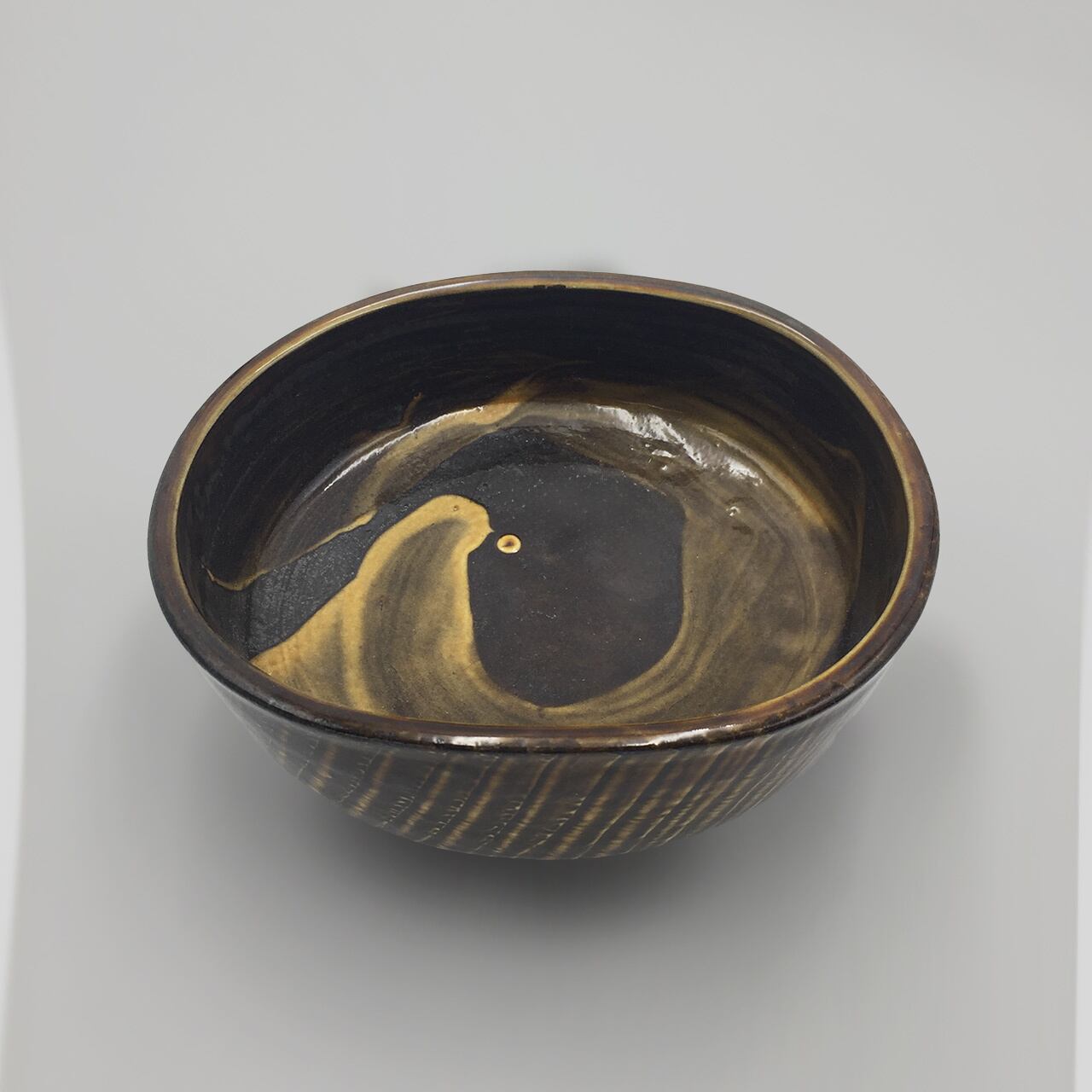 華道家の方からの花器の特注向きに作られた品で、職人の技術と個性を注いだ希少な一点ものです。花器として使用される他、3〜4人分の料理の盛り鉢や菓子鉢などに使え、アシンメトリーな形状は食卓を表情豊かに演出してくれます。和え物やサラダなどをオシャレに盛り付けるのにもオススメです。