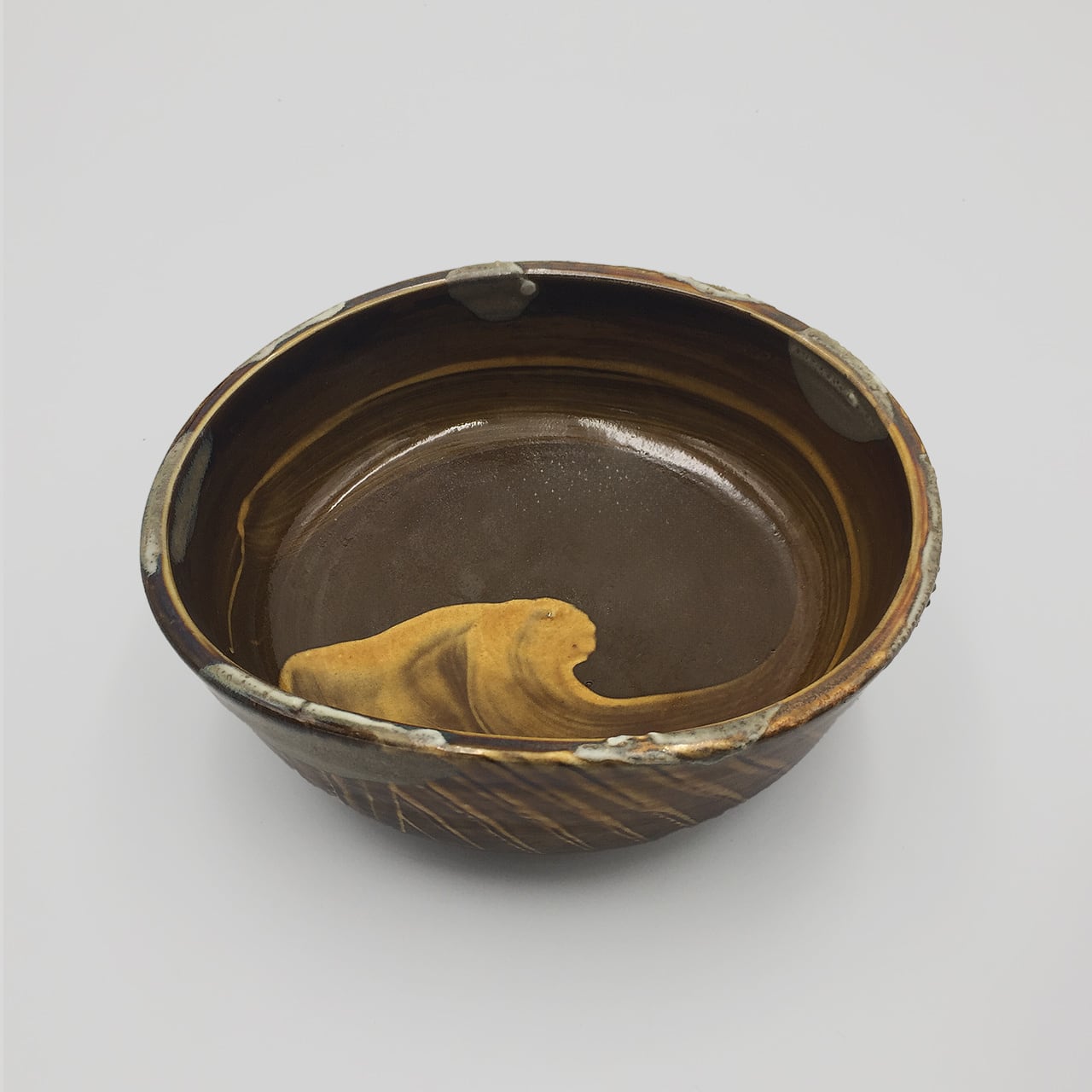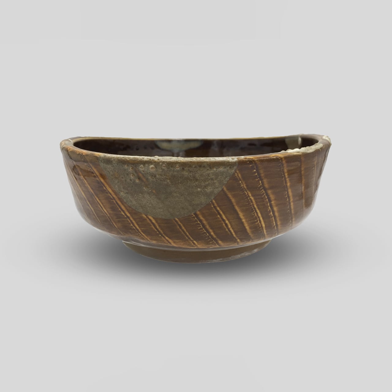 小鹿田焼(おんたやき)の7寸中鉢の変形型です。左右非対称の楕円形で長辺幅は約21cmです。